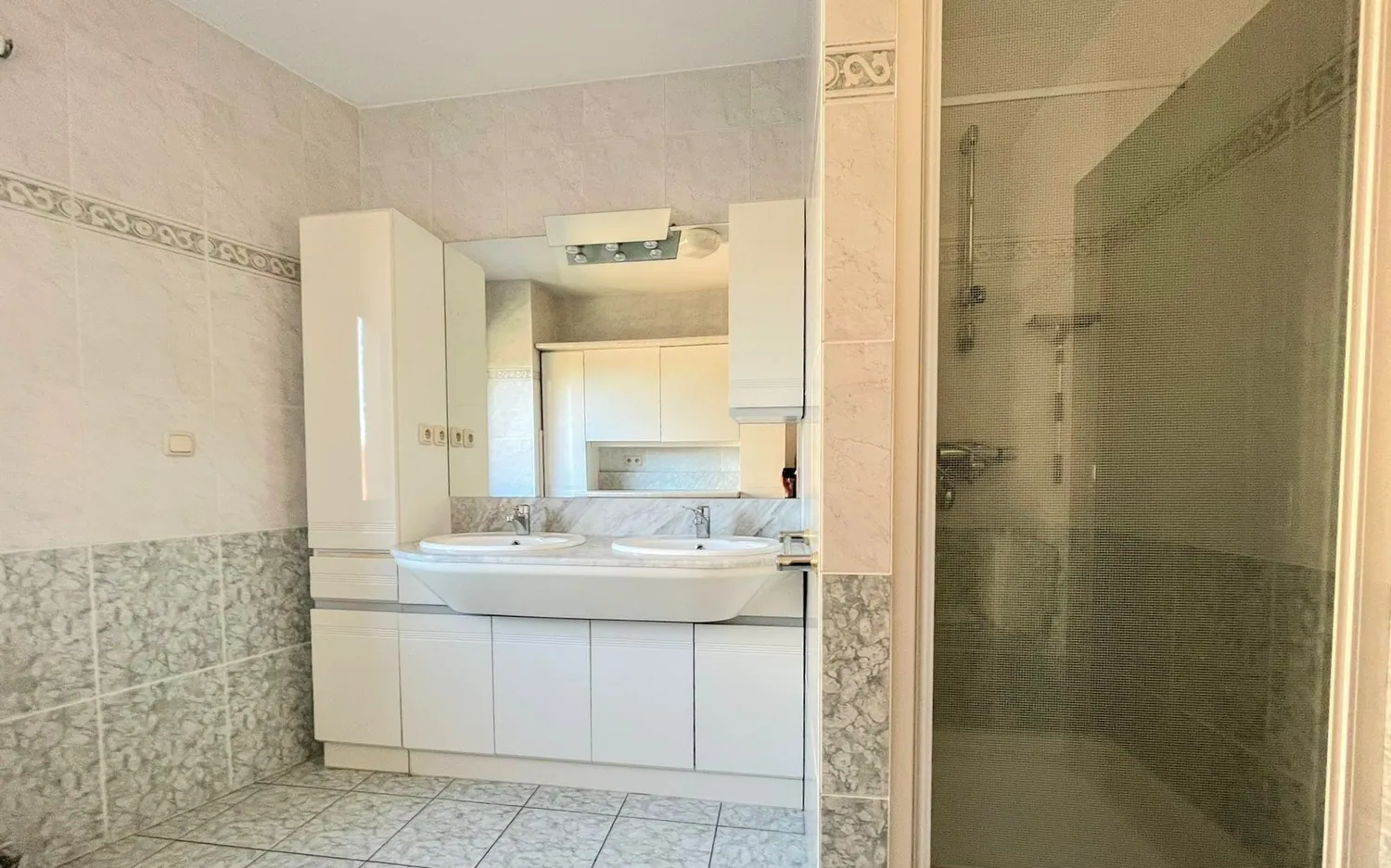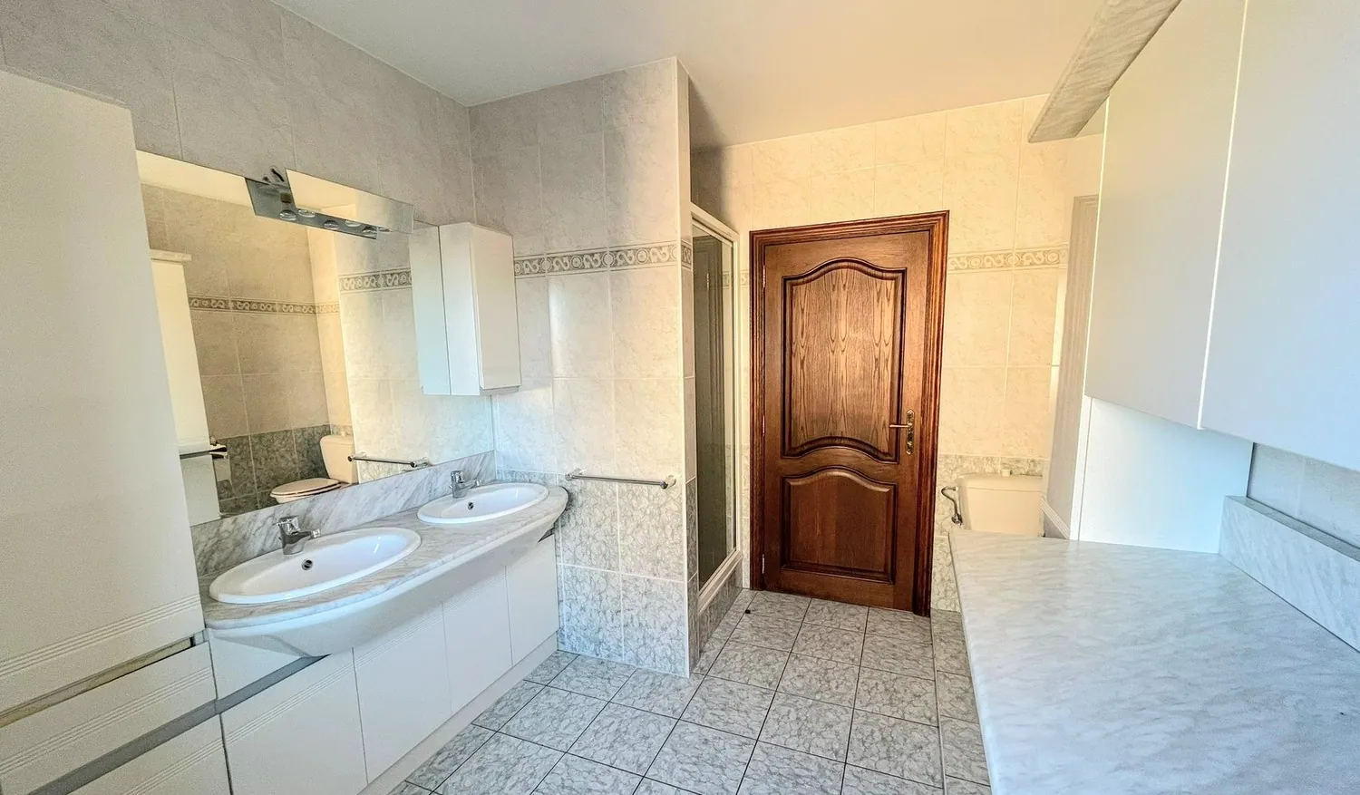 Het appartement beschikt over twee slaapkamers van 15 m² en een vestiaire. Verder is er een gastentoilet en een badkamer met dubbel lavabomeubel, toilet en douche.