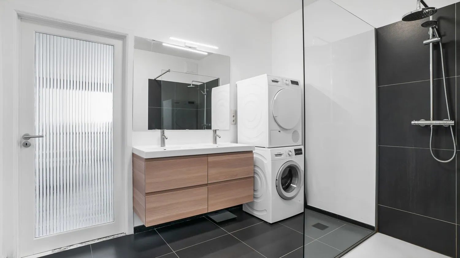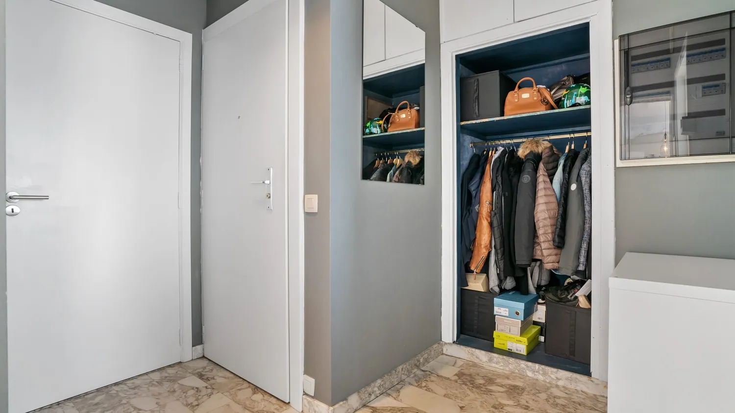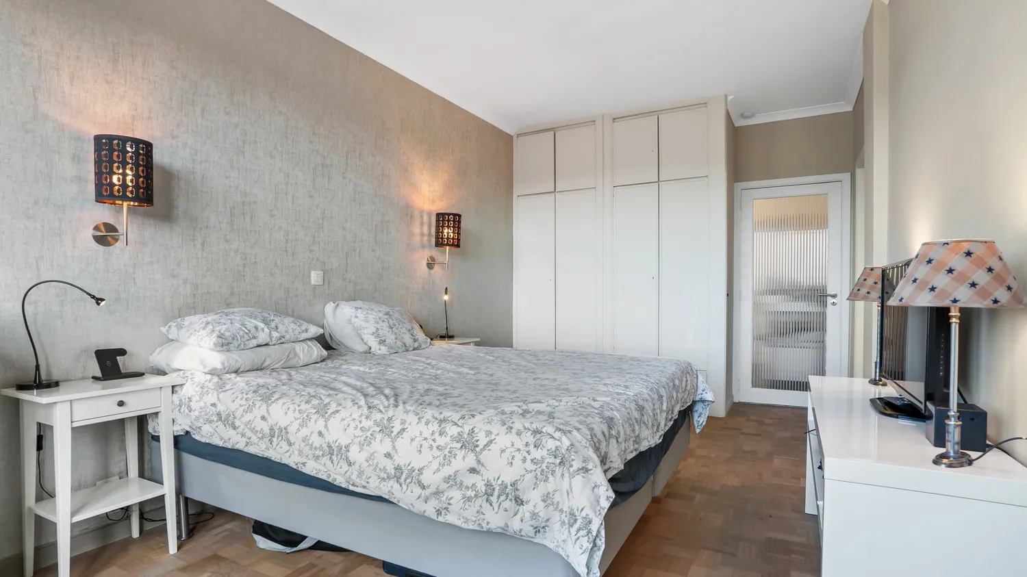In het appartement is er een ruime slaapkamer van 18 m² en een slaapkamer van 9 m². De badkamer is uitgerust met een inloopdouche en ... lavabomeubel. In de hal bevindt zich een apart gastentoilet.