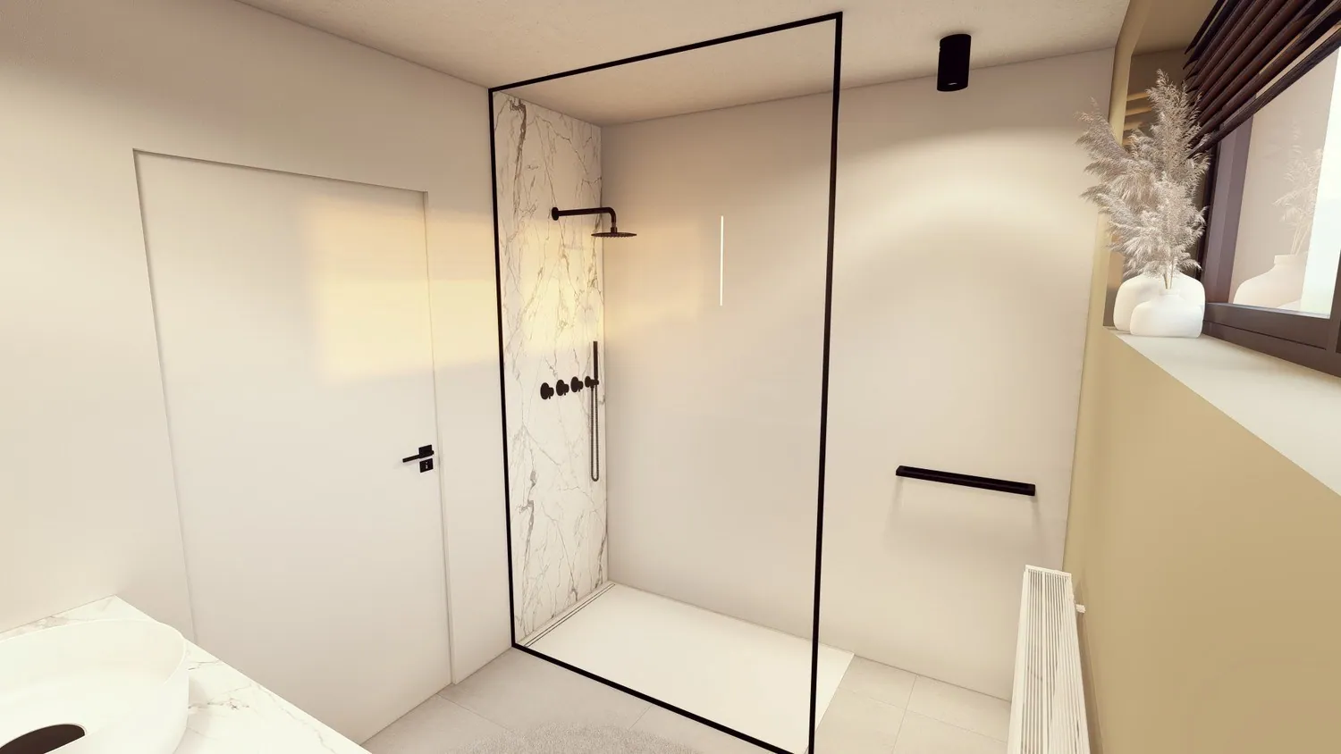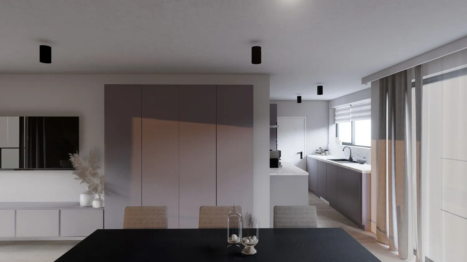 Via de private inkom bereik je de hal met gastentoilet. Allereerst heb je van hieruit toegang tot de lichtrijke leefruimte van 36 m² met open keuken. De kamerbrede raampartijen zorgen voor een optimaal contact met het zonnige terras, zowel aan de voor- als aan de achterzijde van het penthouse. Vanop het terras heb je een panoramisch uitzicht op het mooie Lanaken.