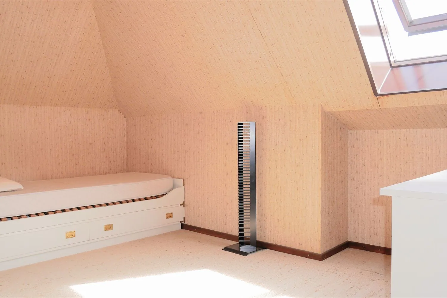 De volledig ingerichte bovenverdieping is bereikbaar via een vaste trap. Hier geeft de nachthal uit op nog 2 leuke slaapkamers en een riante ruimte in loftstijl met centraal een knusse houthaard.