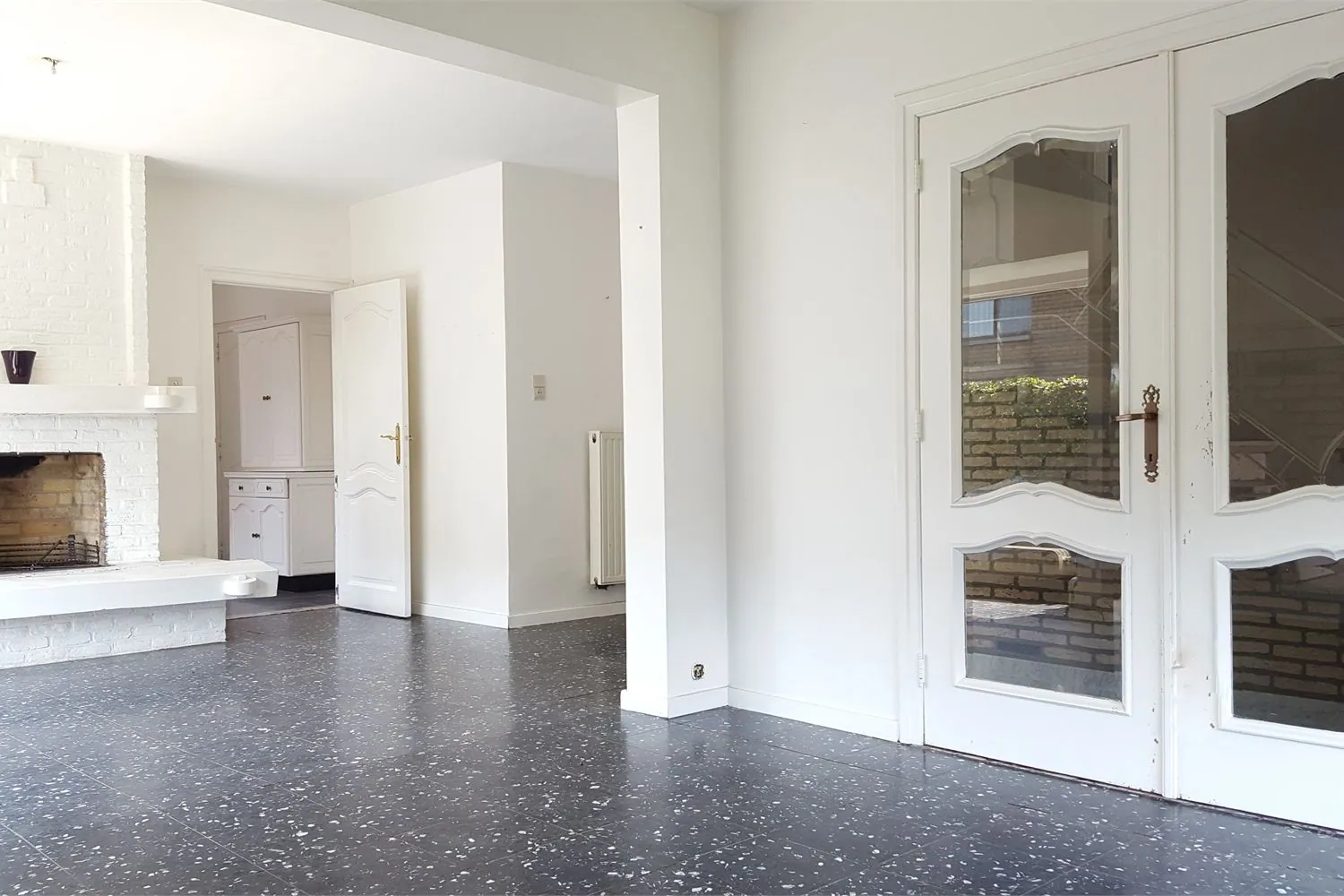 Via de aangrenzende (te renoveren) keuken heb je een mooi zicht op het terras en de achtertuin. Aansluitend is er een compacte, recent vernieuwde badkamer met douchecabine, lavabo en een apart gastentoilet.