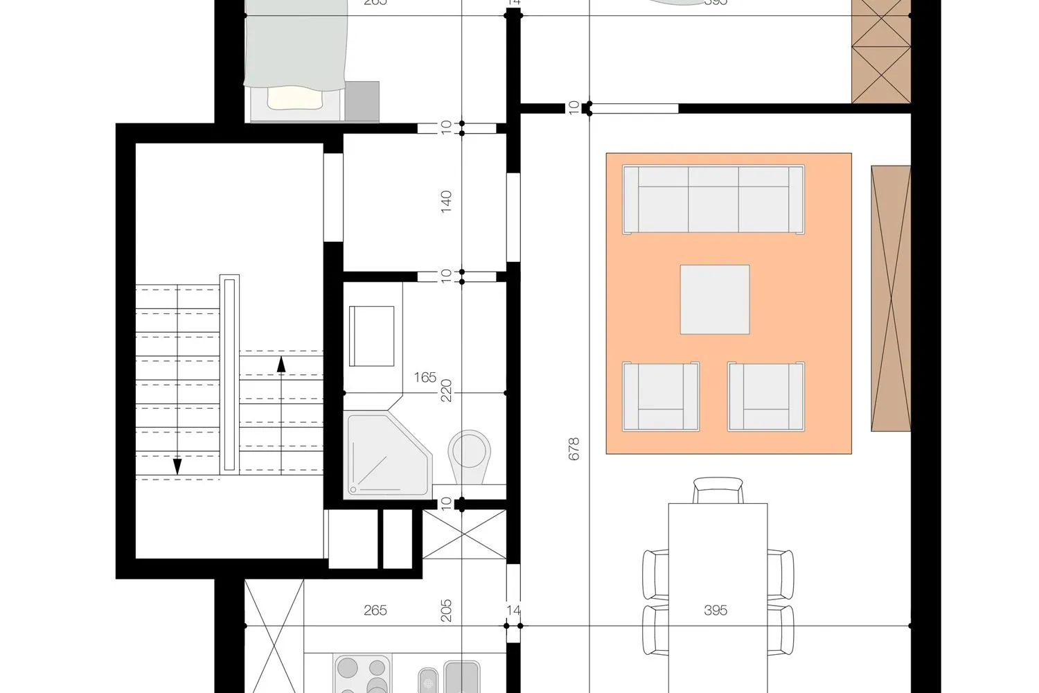 De woonkamer heeft een oppervlakte van circa 26 m² . Via het brede raampartij heb je hier een aangename lichtinval.