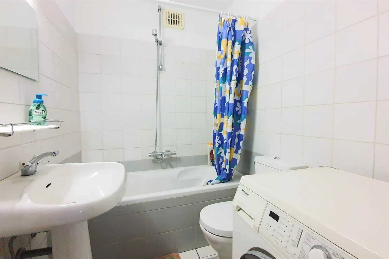 In de badkamer is er een douche in ligbad, een lavabo, een toilet en een aansluiting voor een wasmachine voorzien.