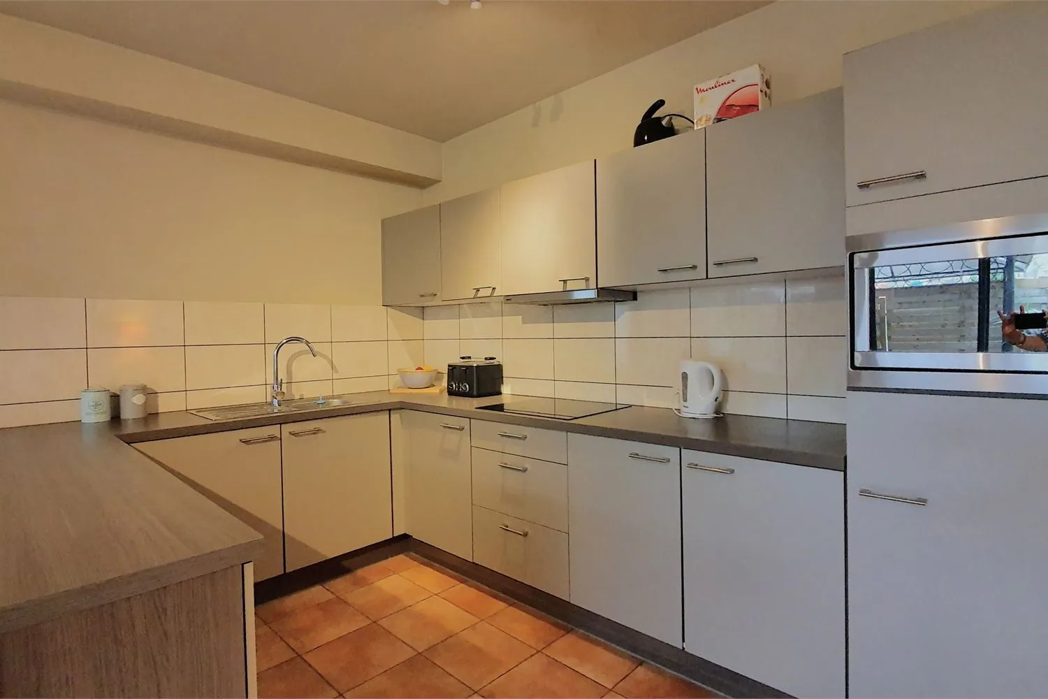 De ingerichte keuken is voorzien van ingebouwde apparatuur (koelkast, spoelbak, combi-oven en keramisch fornuis). Naastgelegen is er een praktisch ingerichte bergruimte.