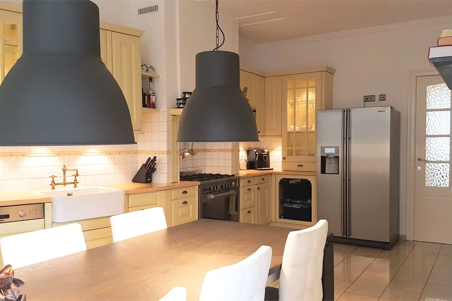 De landelijke leefkeuken met ruime eetplaats is voorzien van degelijke ... keukenapparatuur: er is een vrijstaand fornuis met 6 kookzones + extrabrede bakoven; een vaatwasser en een magnetron. Via de naastgelegen bijkeuken kom je terecht in de voortuin met overdekt terras.