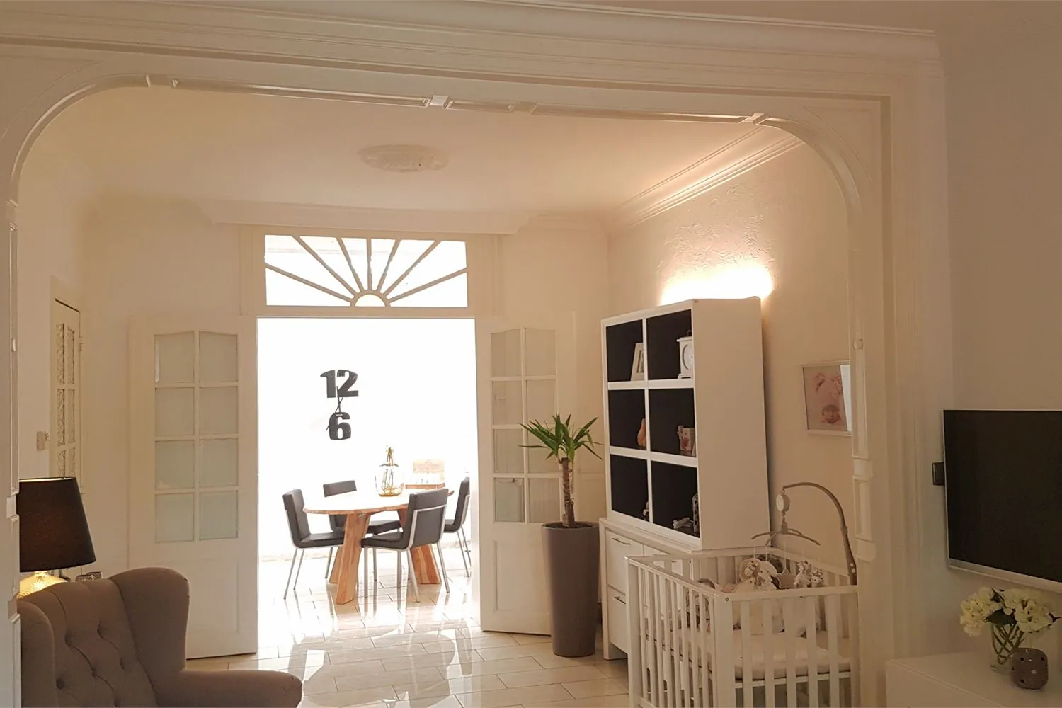 -Geslaagde combinatie van klassieke details met een modern interieur