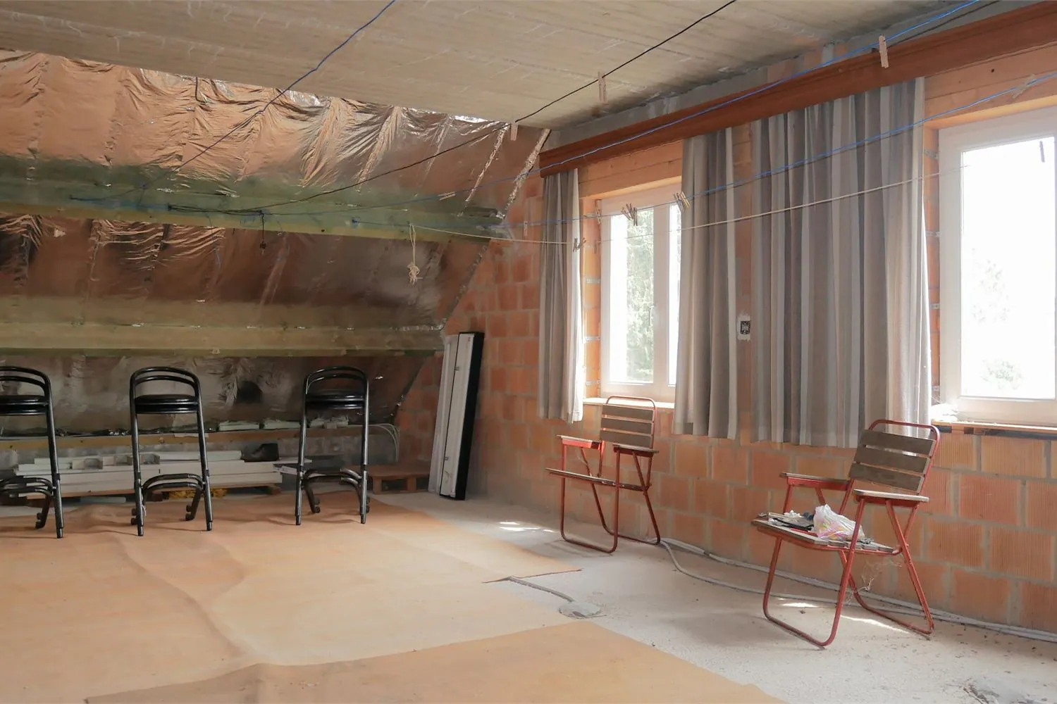 De inpandige garage is bereikbaar via een automatische sectionaalpoort. In de garage is er een vaste trap naar de zolderverdieping. Deze is reeds volledig geïsoleerd en voorzien van ramen en alle nutsvoorzieningen. Hier kunnen makkelijk extra kamers worden gecreëerd.