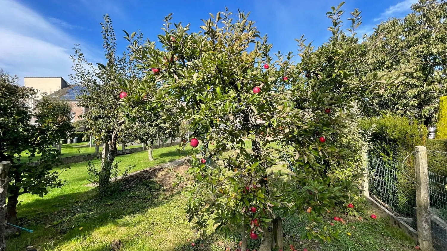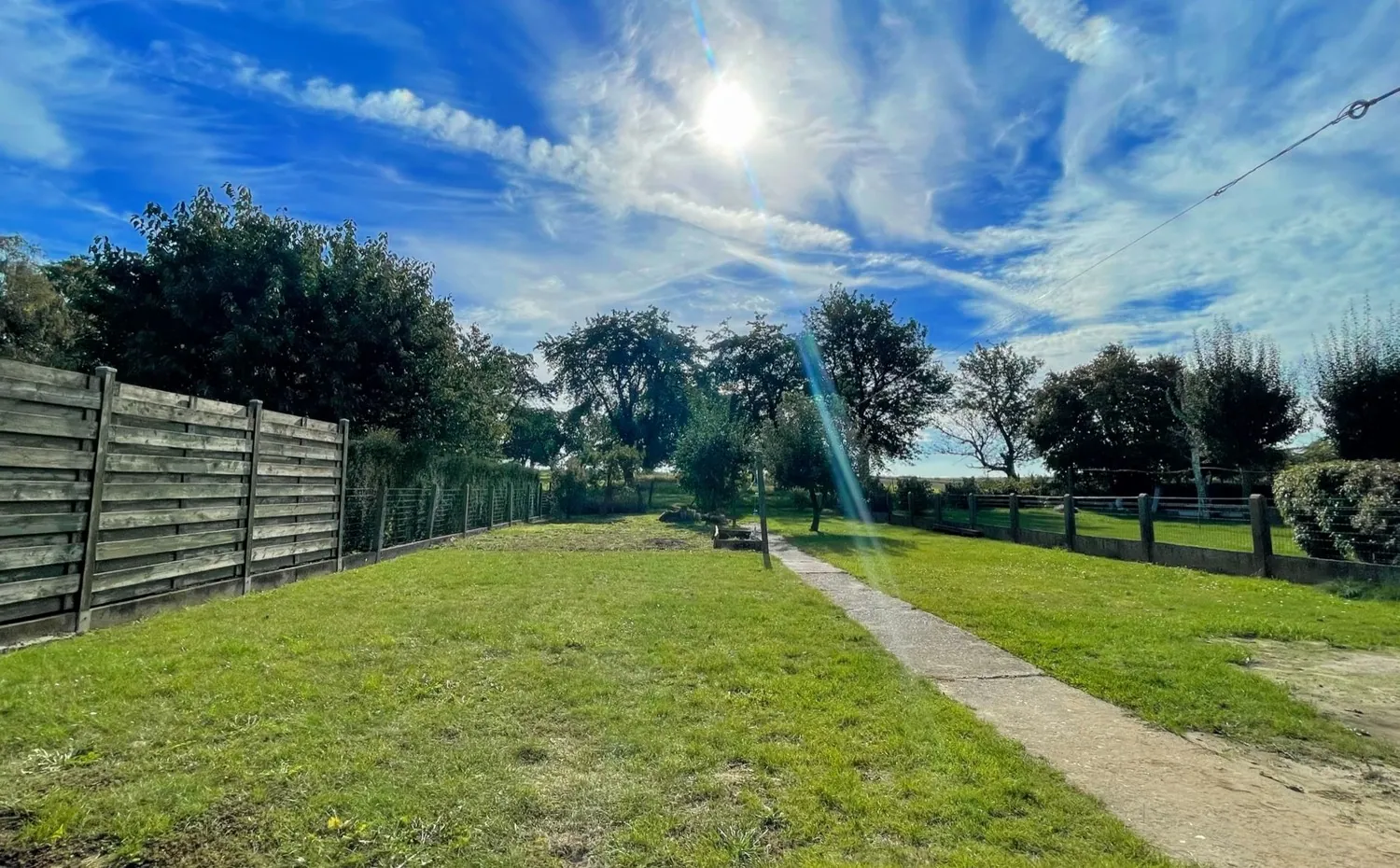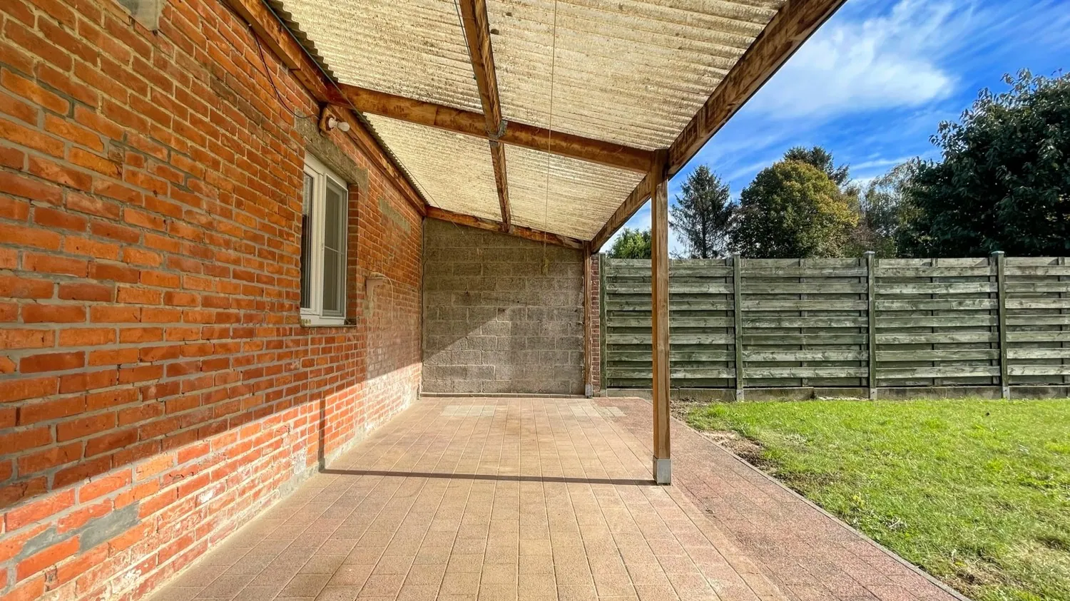 De zuidgerichte tuin is uitgerust met een overdekt terras. In de tuin bevinden zich enkele mooie fruitbomen en geniet je van een panoramisch uitzicht op de achtergelegen velden.