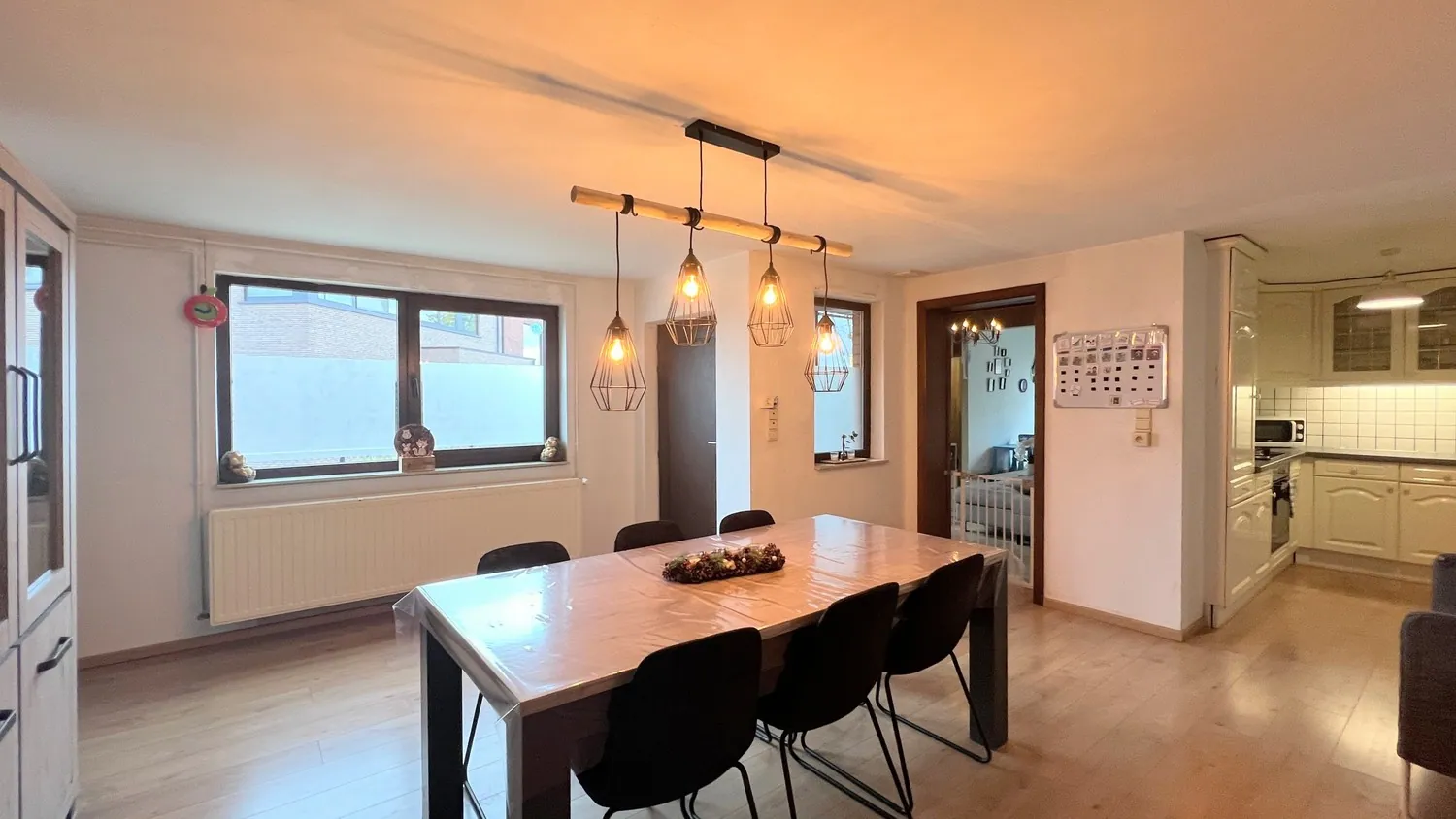 Via de inkomhal met gastentoilet bereik je de ruime leefruimte van 30 m² met zit- en speelhoek. Aansluitend is er een praktische keuken met inbouwapparatuur met gezellige eethoek. Achteraan in de woning is er een berging en badkamer met lavabomeubel en ligbad.
