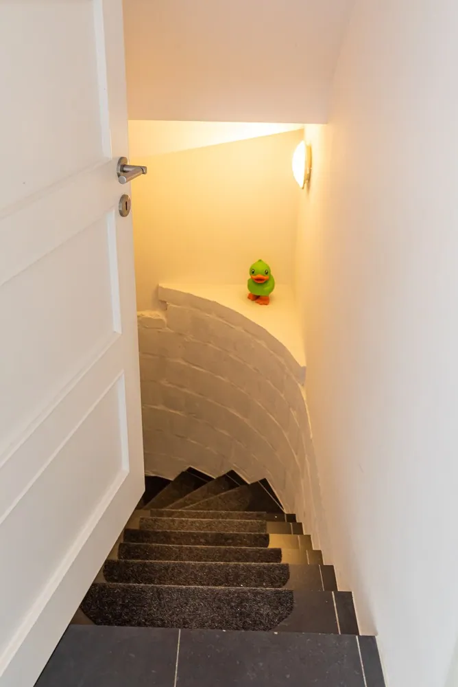 Op kelderniveau bevindt een technische ruimte, een voorraadkelder en een ruime, inpandige garage met automatische sectionaalpoort. Hier is er voldoende ruimte voor 2 wagens, fietsen en tuingerief.