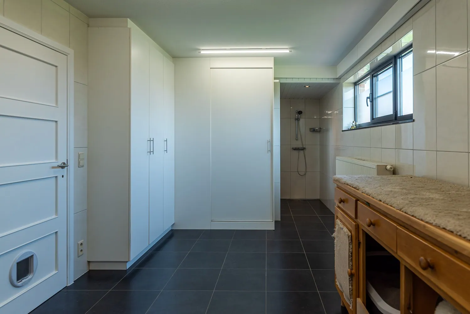 - een ruime berging (met inbouwkasten, aansluiting wasmachine en droogkast en inloopdouche)