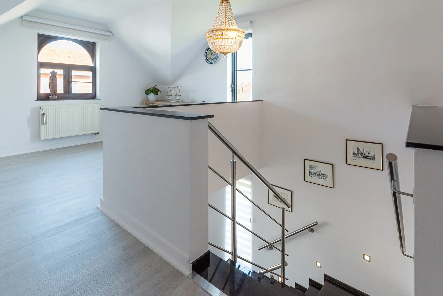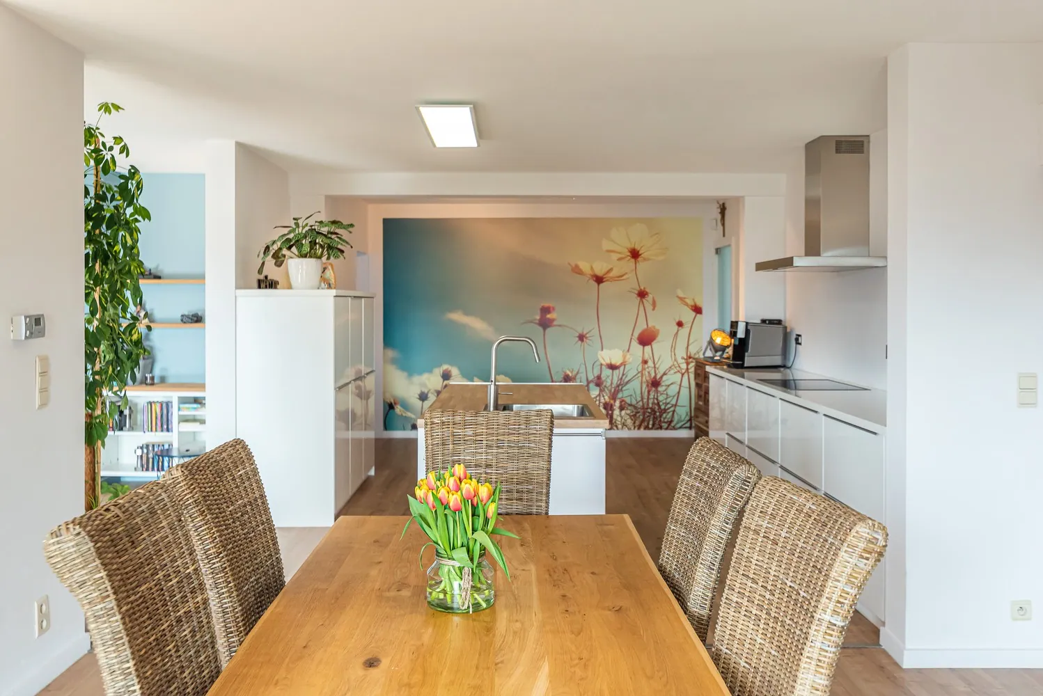 Deze sfeervolle, royale vertrekken hebben een oppervlakte van 80 m² en zijn ingedeeld in een leefruimte, een open keuken, een knusse ... zithoek en aansluitend een eetkamer. De ingebouwde gashaard zorgt hier voor extra sfeer en charme.