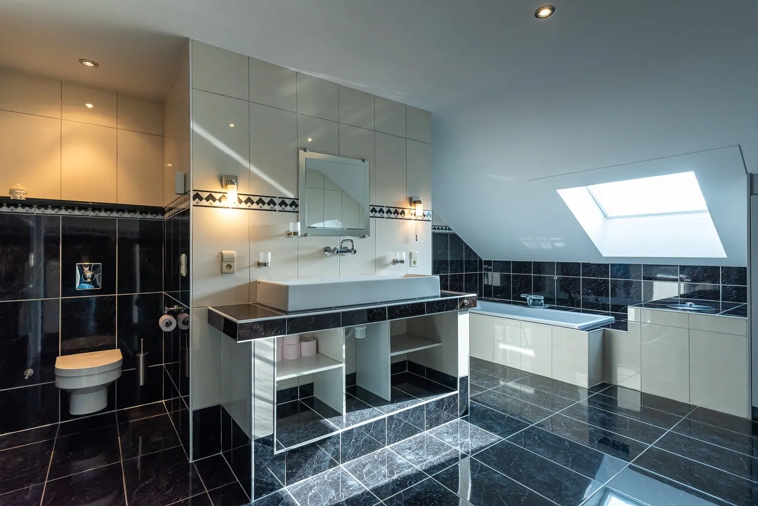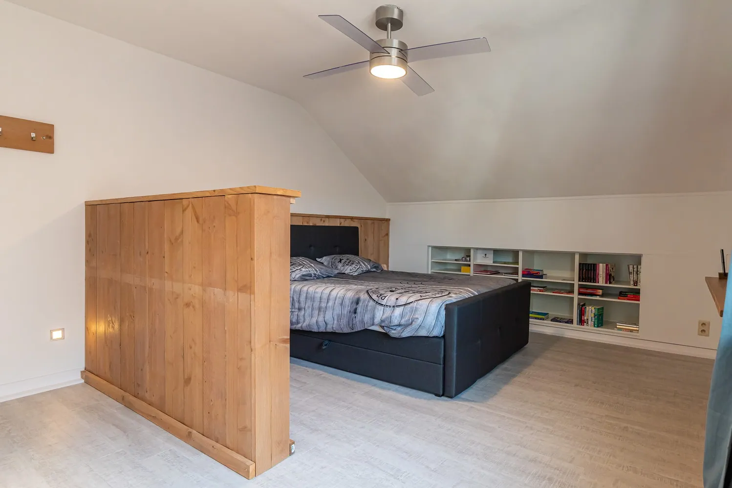 Op de eerste verdieping geeft de overloop uit op een nachthal met 4 riante slaapkamers en een luxe badkamer. Deze is uitgerust met een ligbad, een lavabomeubel, een inloopdouche, een toilet en een praktische waskoker.