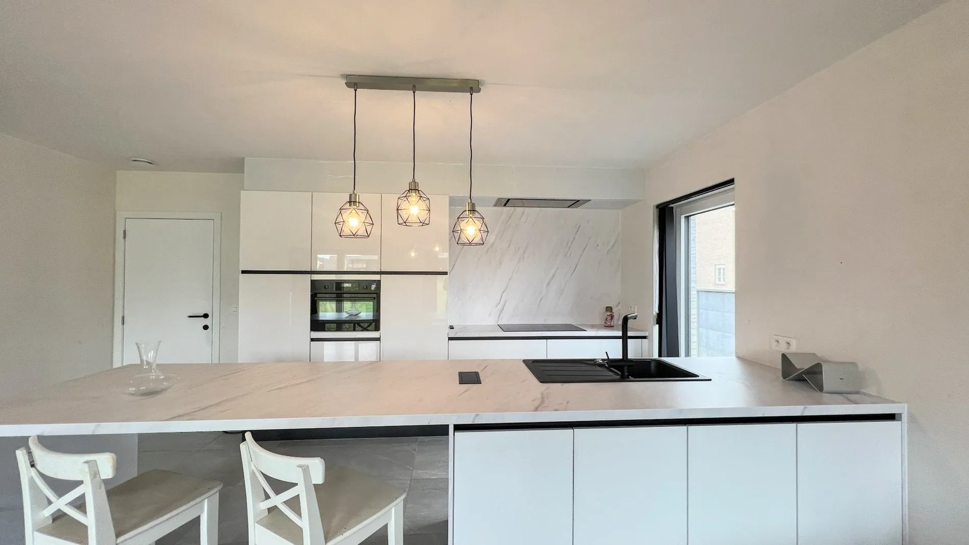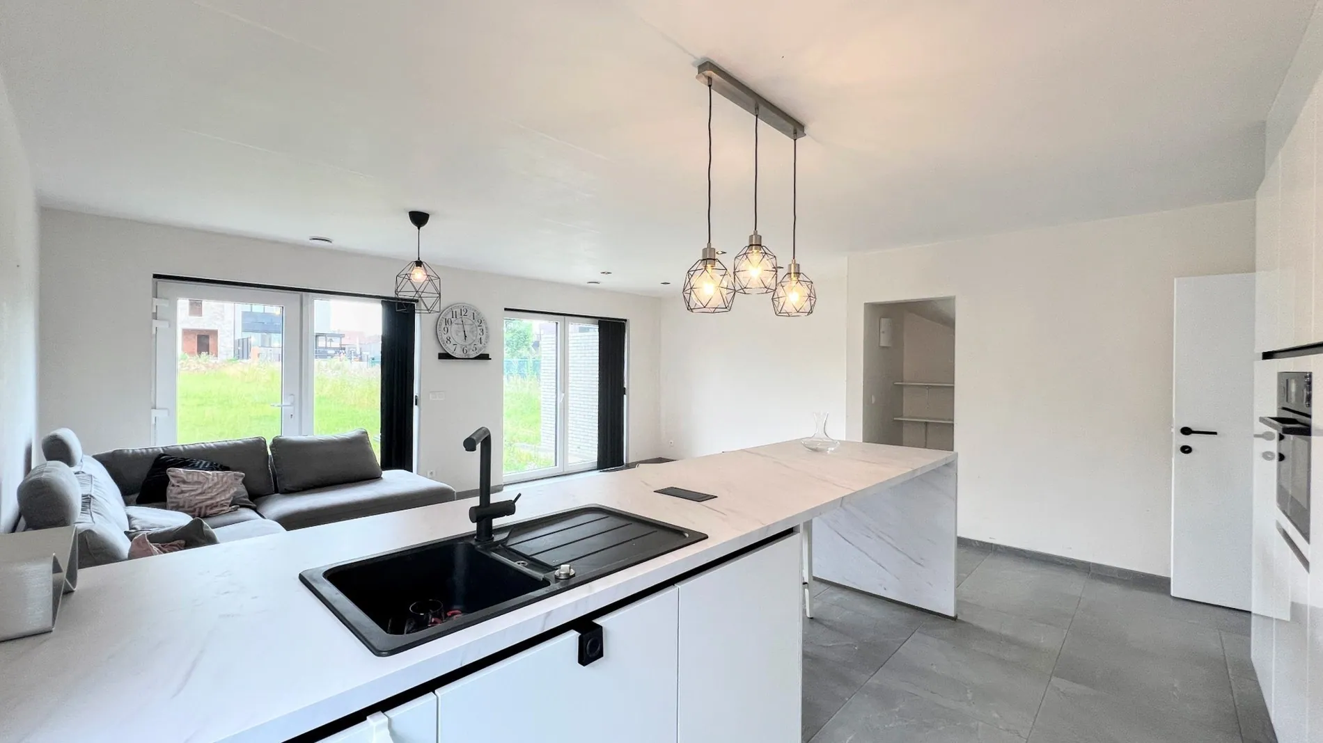 Via de inkomhal met gastentoilet heb je toegang tot de berging en leefruimte. De royale leefruimte met open keuken is voorzien van grote schuiframen waardoor je geniet van veel natuurlijk daglicht. De ruime tuin is perfect om te genieten van de rustige omgeving. De moderne open keuken is uitgerust met inbouwapparatuur en keukeneiland met zitplaatsen.