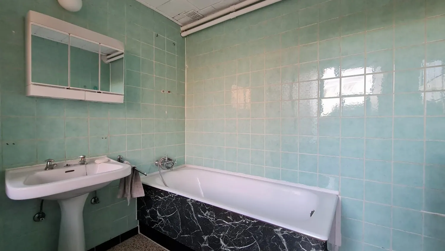 Achtergelegen is er een badkamer met ligbad en lavabo, een apart gastentoilet en een berging met aansluiting voor de wasmachine.