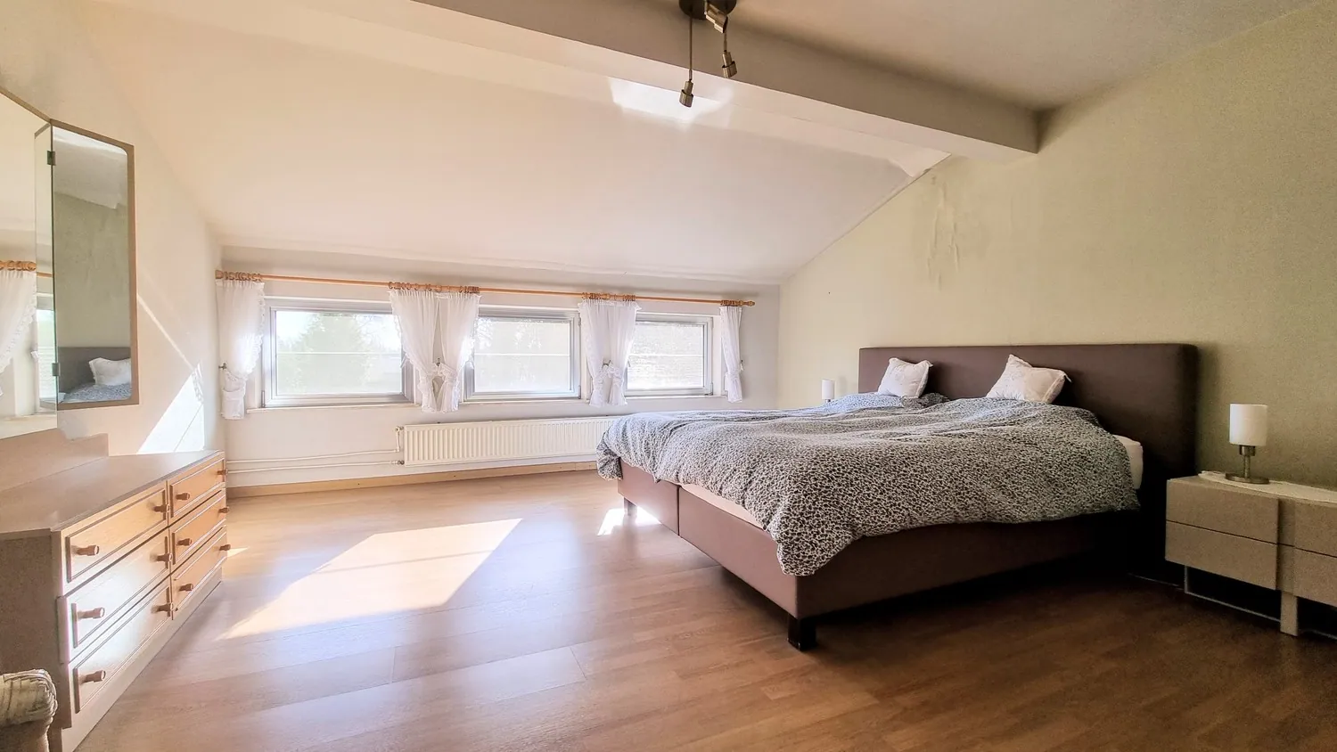 Op de eerste etage bereik je via een ruime nachthal drie aangename slaapkamers met een oppervlakte van 20, 17 en 14 m². De recent gemoderniseerde badkamer beschikt over een inloopdouche en een lavabomeubel.