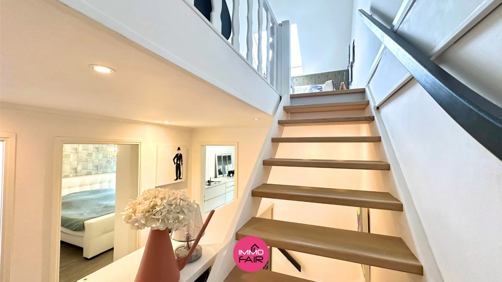 De nachthal op de eerste verdieping geeft uit op drie slaapkamers en een badkamer. Ook de master bedroom is voorzien van een knus terras. De badkamer beschikt over een douchecabine, een toilet en een lavabo.