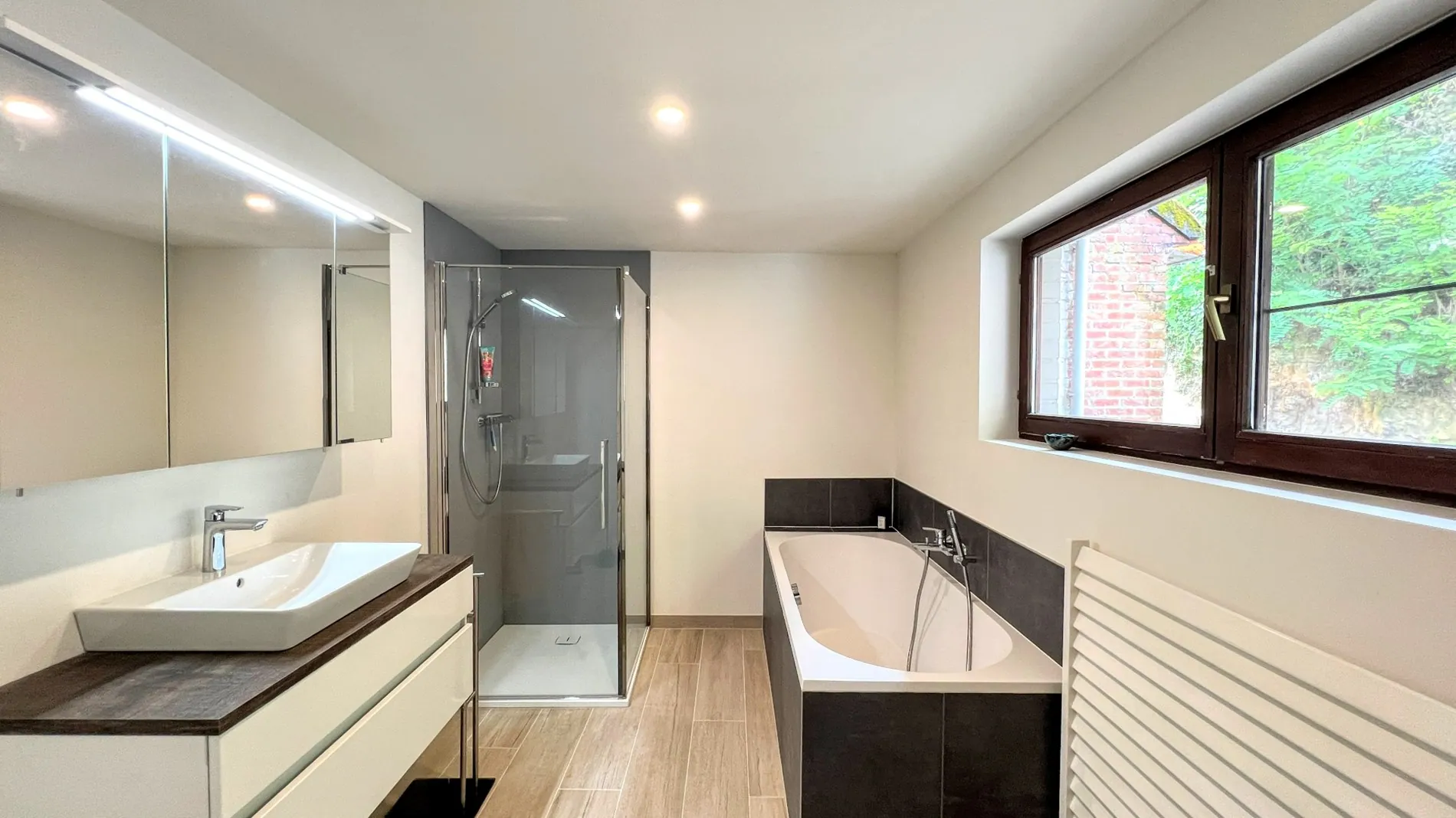 Op de eerste etage geeft de nachthal uit op vier ruime slaapkamers en een moderne badkamer die volledig gerenoveerd is in 2023.