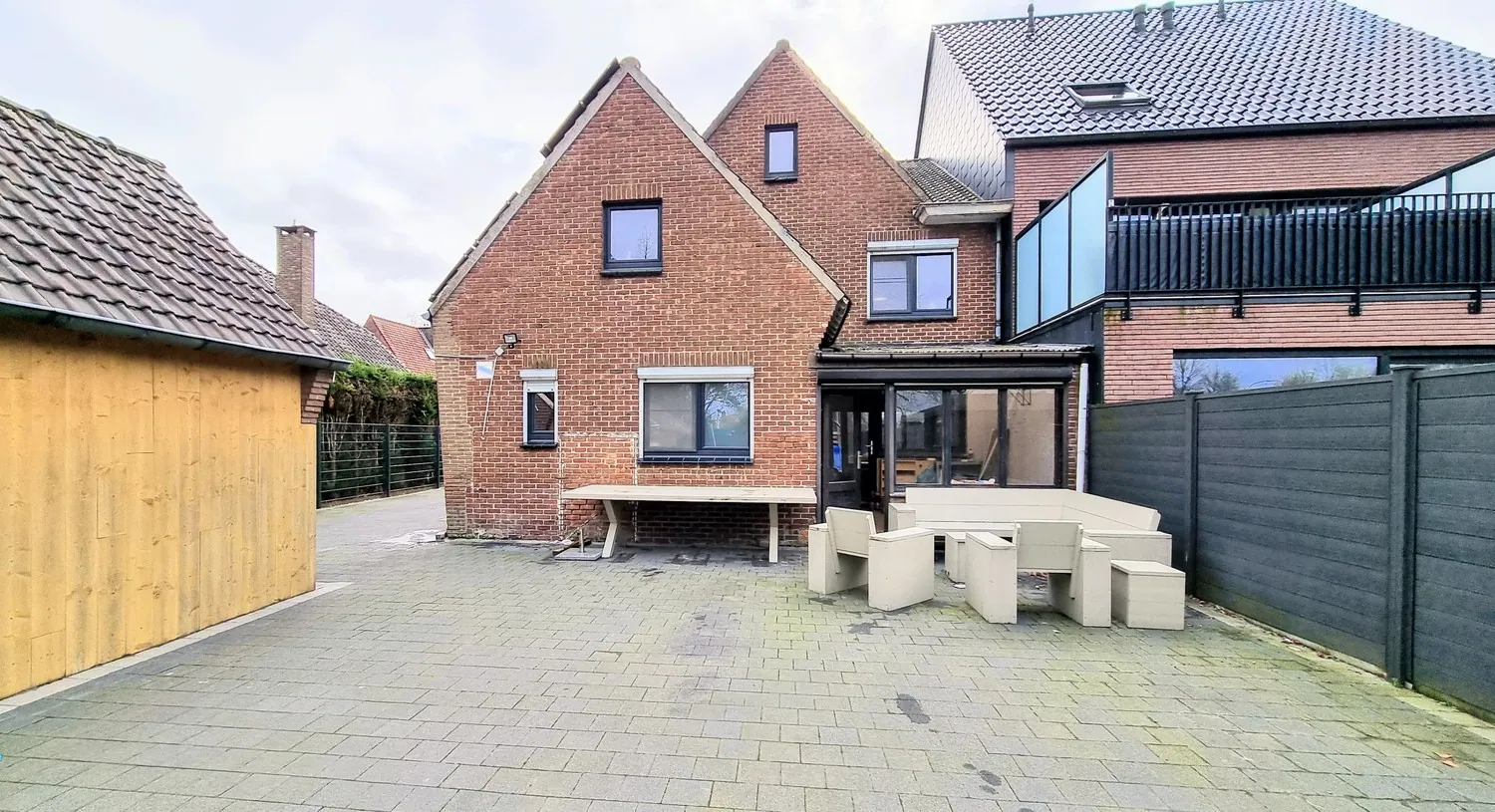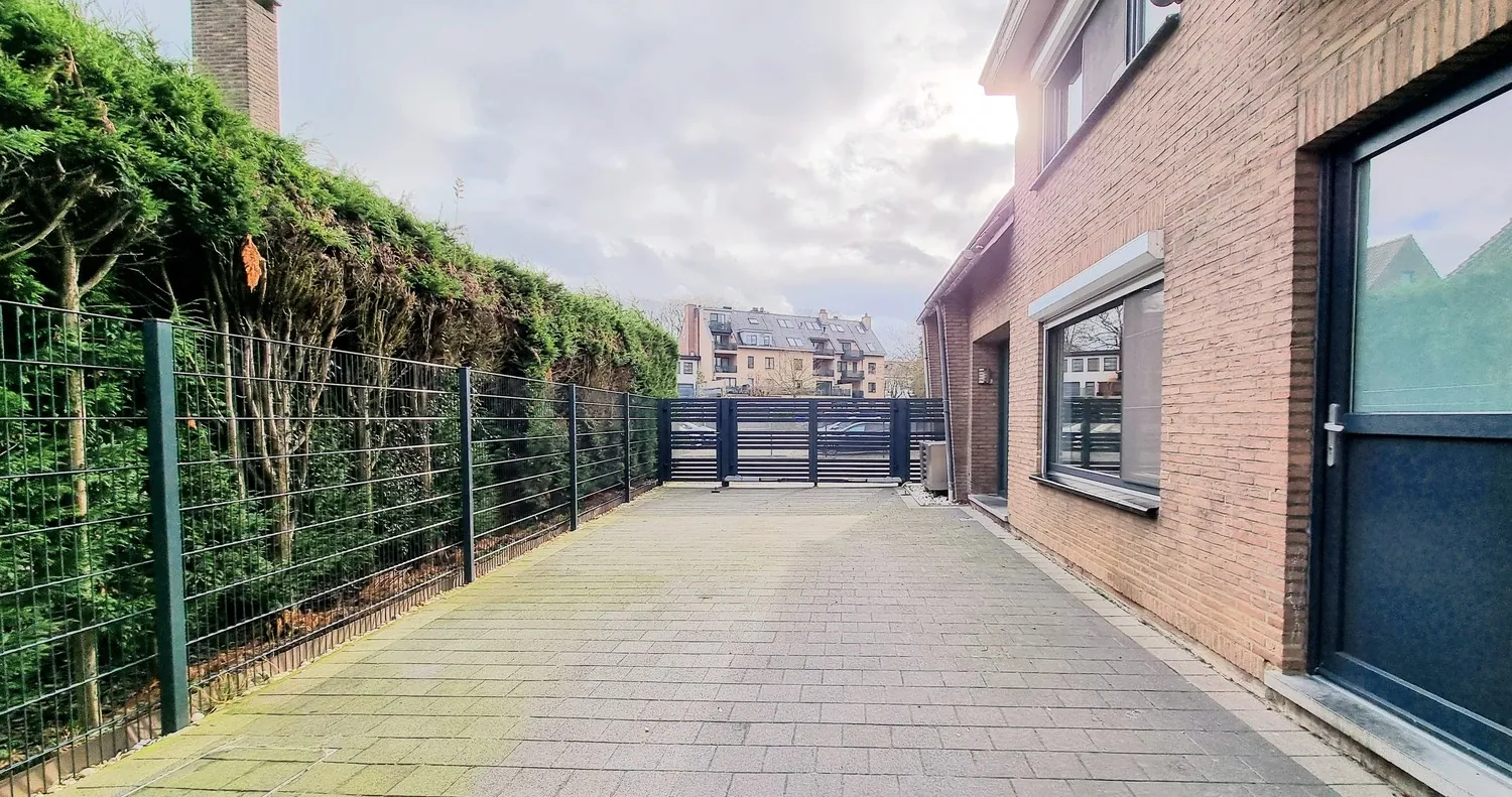 De brede oprit met nieuwe poort geeft uit op de achtertuin met afzonderlijk garagegebouw. De volledig omheinde tuin met terras is zeer ... onderhoudsvriendelijk, hier kan je genieten van alle rust.