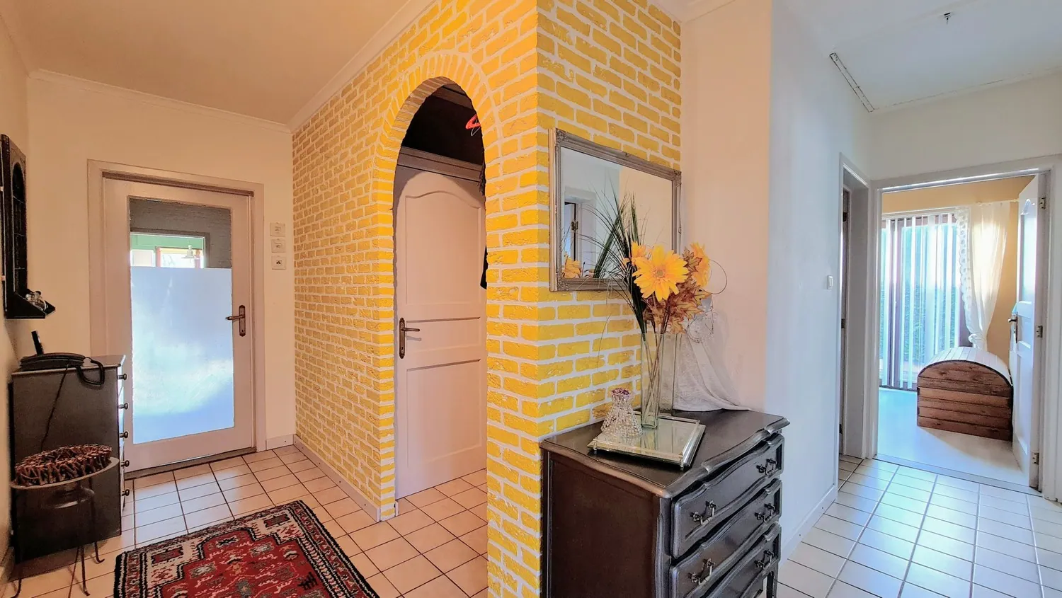 De inkomhal geeft toegang tot de leefruimte en de slaapvertrekken. Hier bevindt zich ook het gastentoilet met vestiaire.