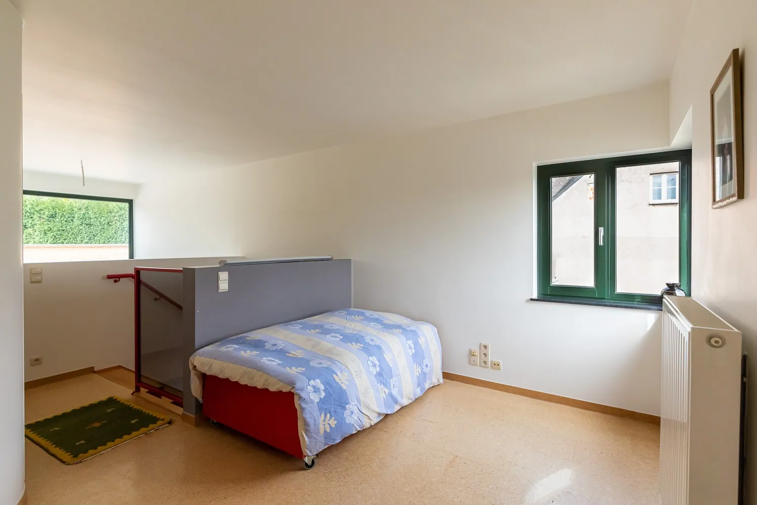 Op de 2de etage geeft een ruime overloop uit op een slaapkamer en een badkamer. De slaapkamer van 17 m² geeft toegang tot een ruim dakterras: hier geniet je van de zon in alle rust en privacy! In de badkamer is er een lavabomeubel, een nachttoilet en een duo -inloopdouche.