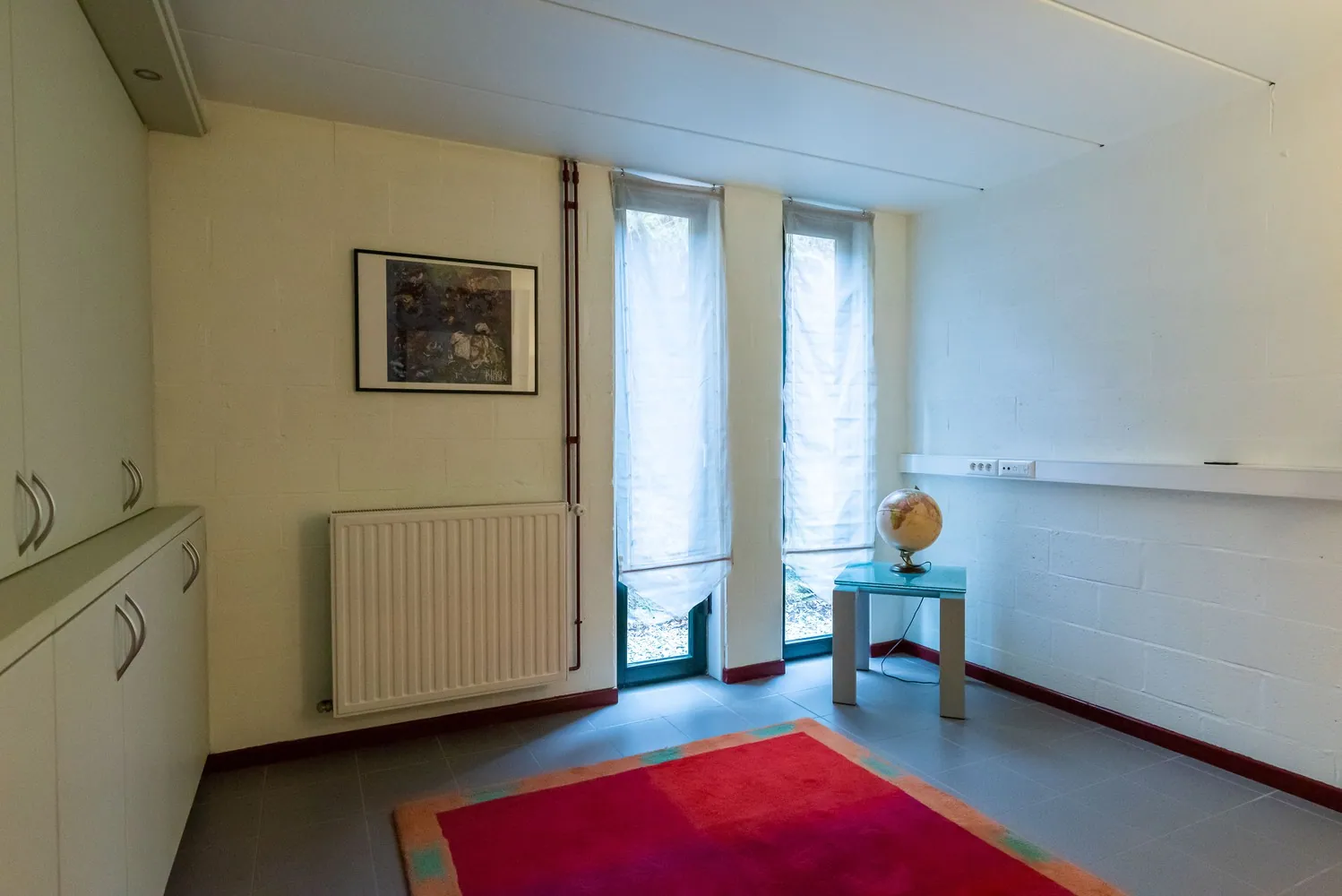 De 1e etage is ingericht als privévertrekken. Hier bevindt zich een royale leefruimte van 45 m². Kenmerkend aan deze ruimtes zijn de kamerbrede raampartijen die het zonlicht binnenhalen. Ook heb je van hieruit een fijne verbinding met het terras en de omsloten achtertuin.