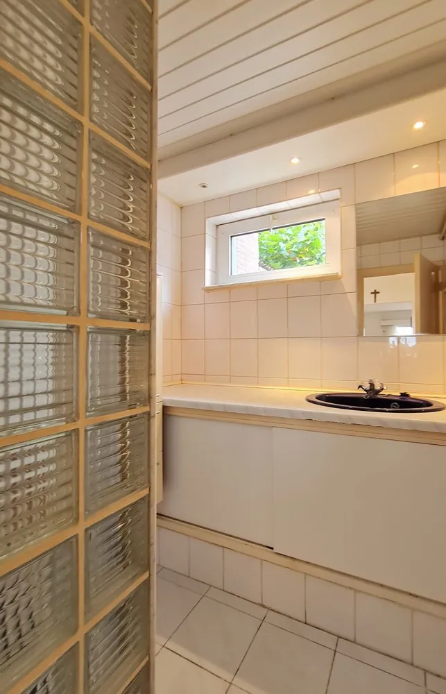 Verder bevindt er zich op deze verdieping een eenvoudige badkamer met douche en lavabomeubel en een gastentoilet.