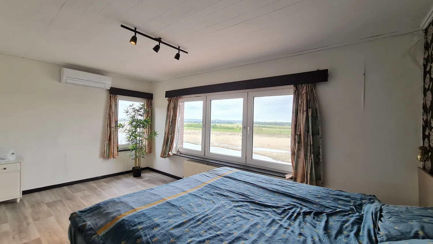 Op de eerste verdieping zijn er drie slaapkamers. De grootste slaapkamer is voorzien van inbouwkasten en airconditioning. Hier kan je ... de zonsopkomst en het uitzicht op het water bewonderen.