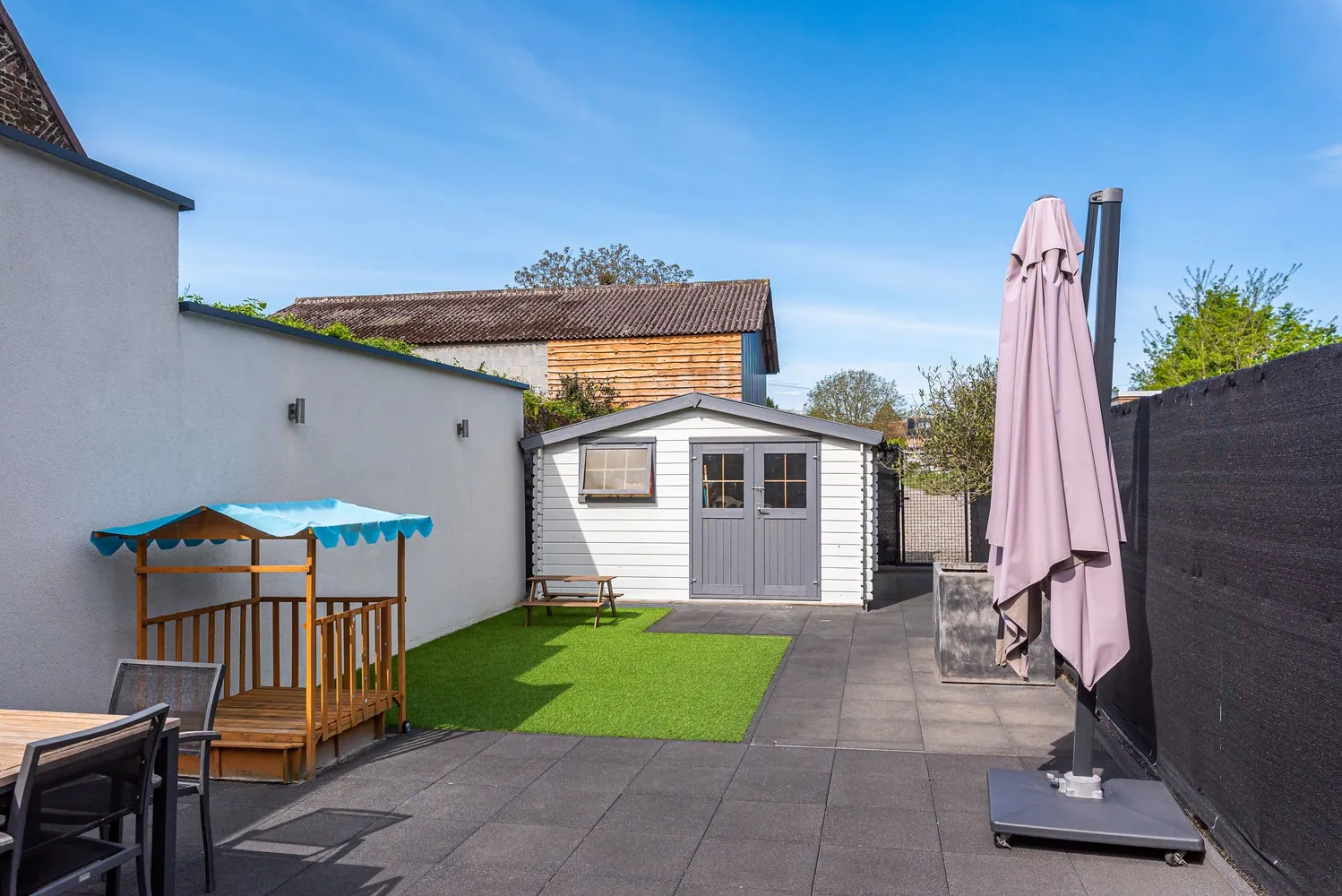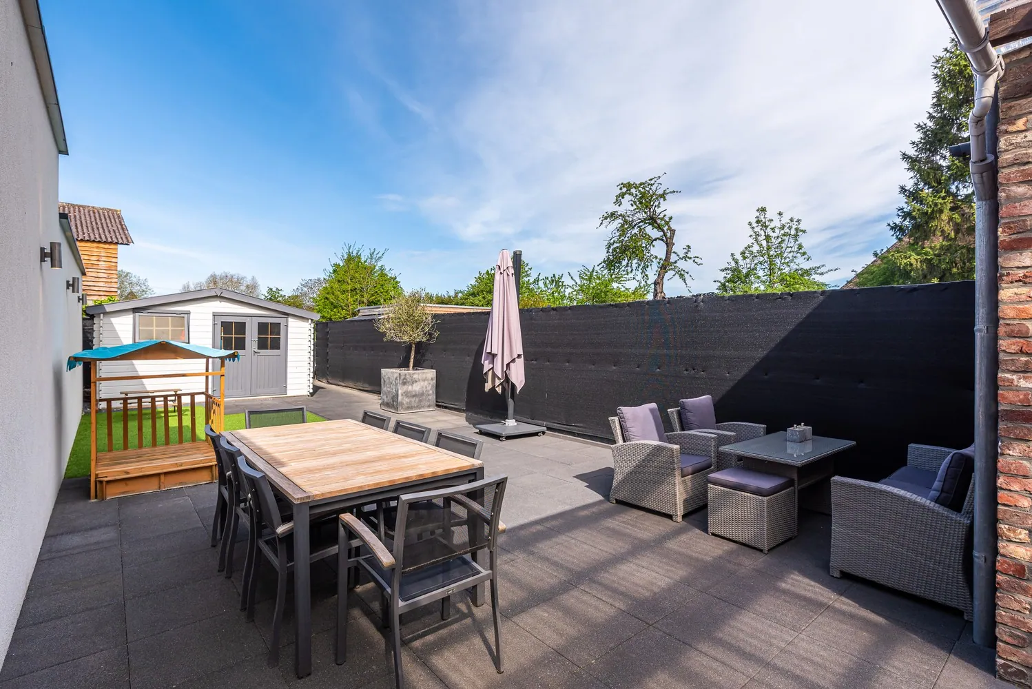 De omheinde achtertuin met tuinhuis is ... aangelegd met het oog op comfort, genot en privacy. Via het achterpoortje kun je de private autostandplaats bereiken (parking is bereikbaar via de Dikke Hagestraat).