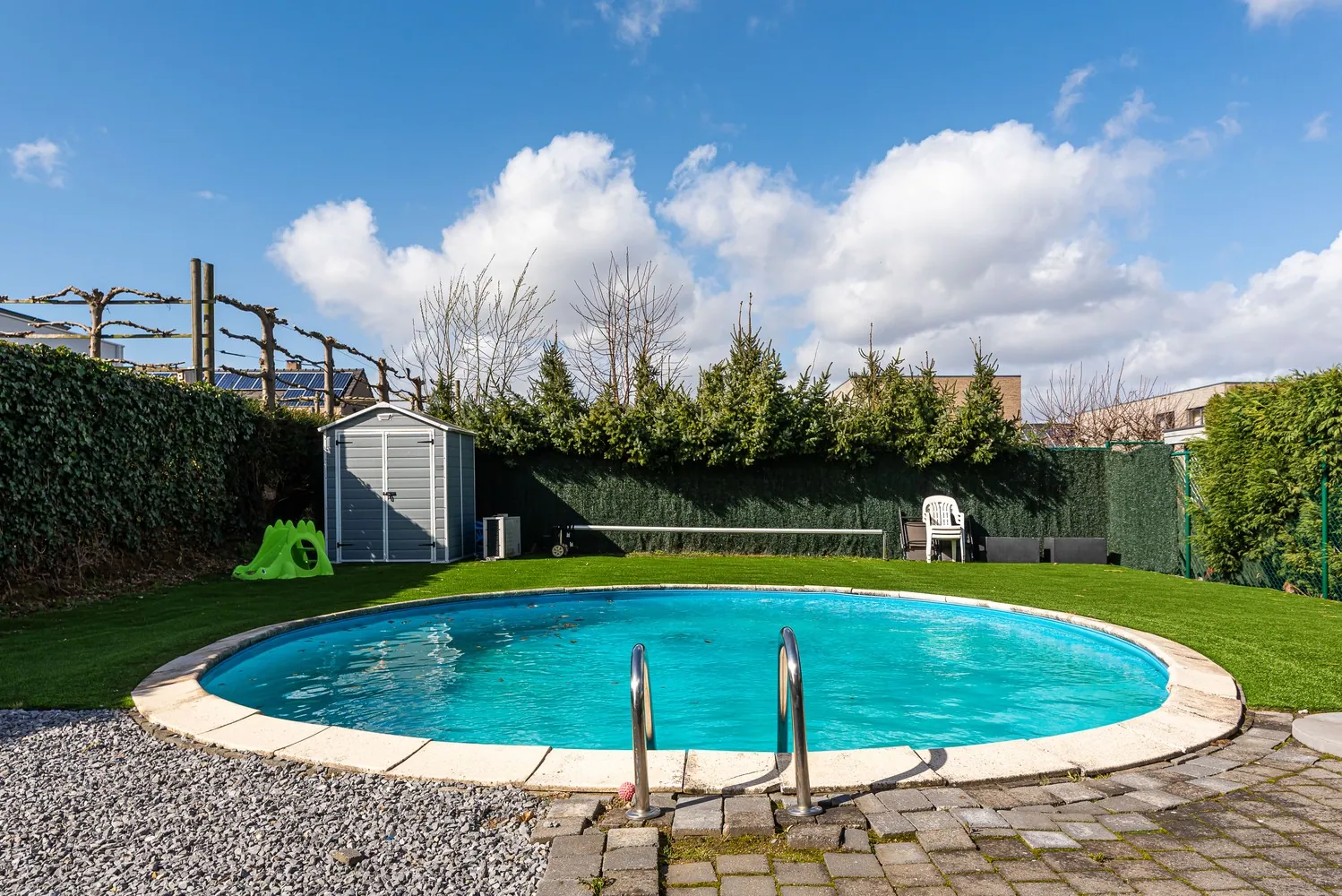 De omheinde tuin is onderhoudsvriendelijk aangelegd en beschikt over een verwarmd zwembad, ideaal voor een duik doorheen alle seizoenen!