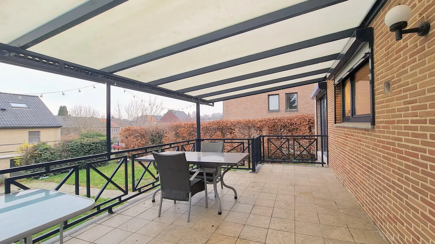 De onderhoudsvriendelijk aangelegde achtertuin is volledig omheind en bereikbaar via de zijoprit en het terras.