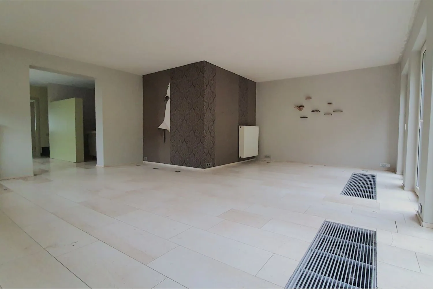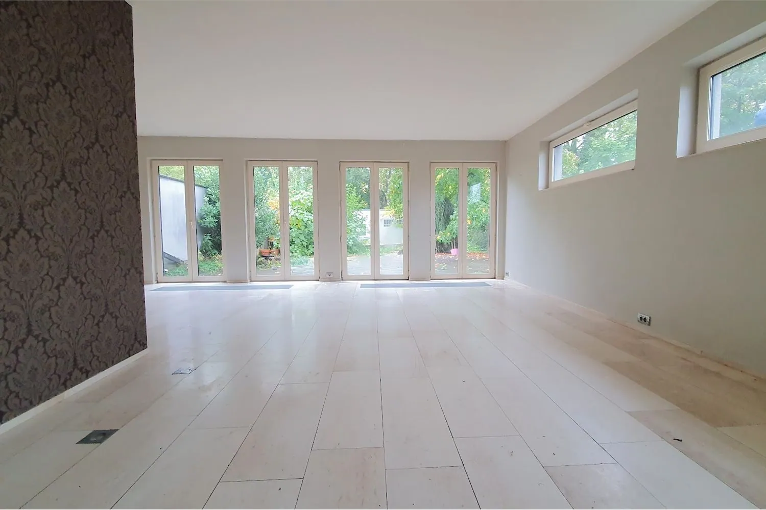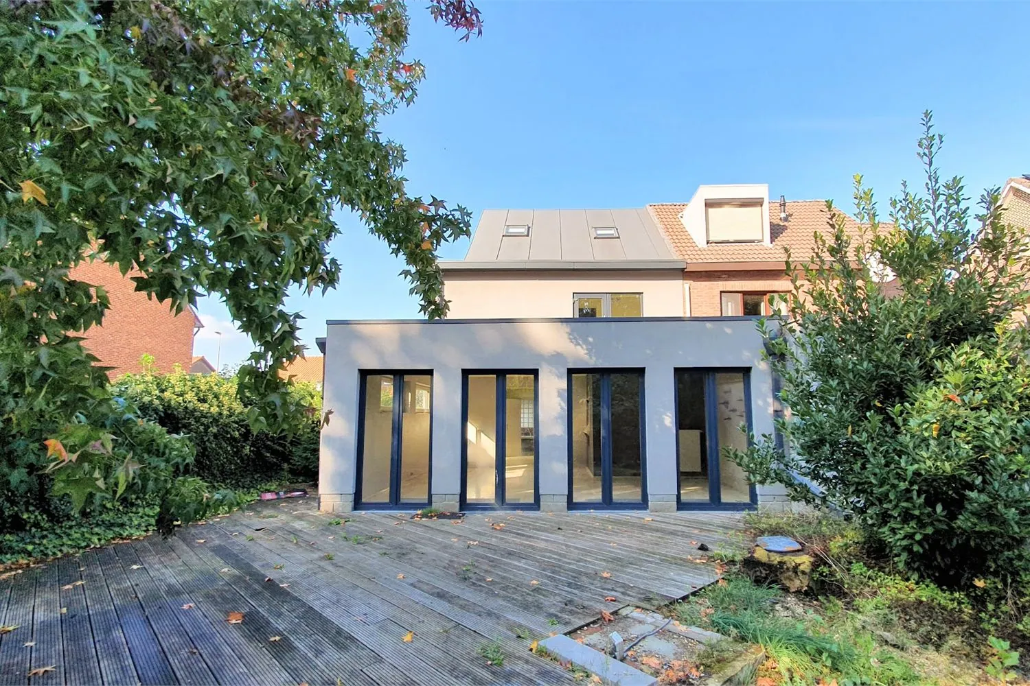 De leefruimte van 33 m² beschikt over grote ramen die zorgen voor een aangename lichtinval en geven een fijne verbinding met het terras en de achtertuin.