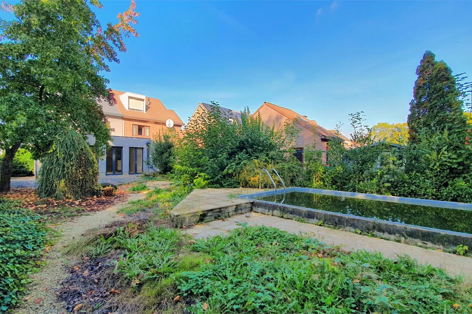 De ruime, omheinde achtertuin met ingebouwd zwembad is circa 300 m² en zuidgericht. Hier kan je genieten van alle privacy, rust en zon!