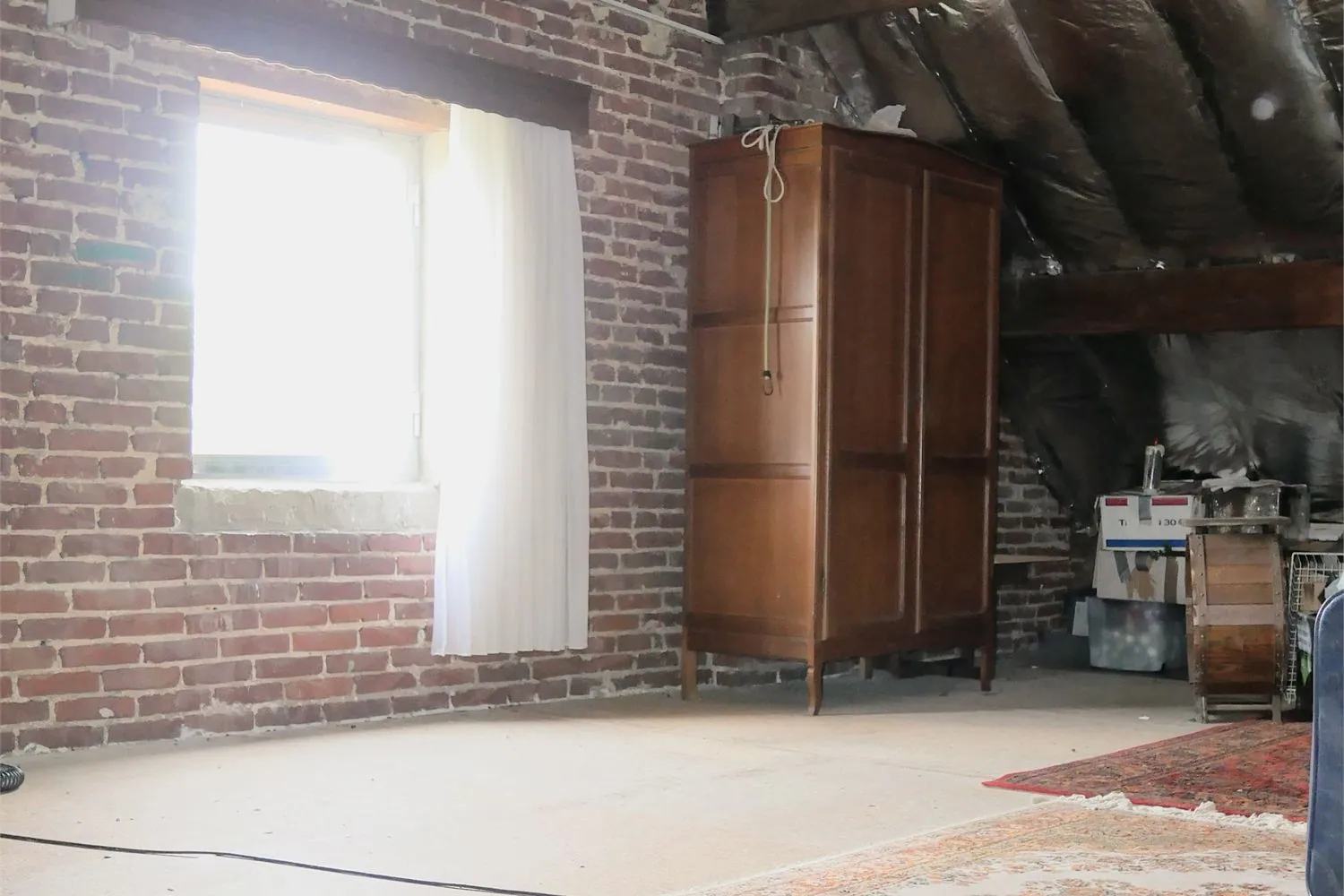 Op de eerste verdieping zijn er 2 slaapkamers met een oppervlakte van 14 m² en een 3de kamer van 6 m². De ... (niet-ingerichte) zolderverdieping heeft een oppervlakte van 28 m² en is bereikbaar via een vaste trap. Verder is deze woning gedeeltelijk onderkelderd.