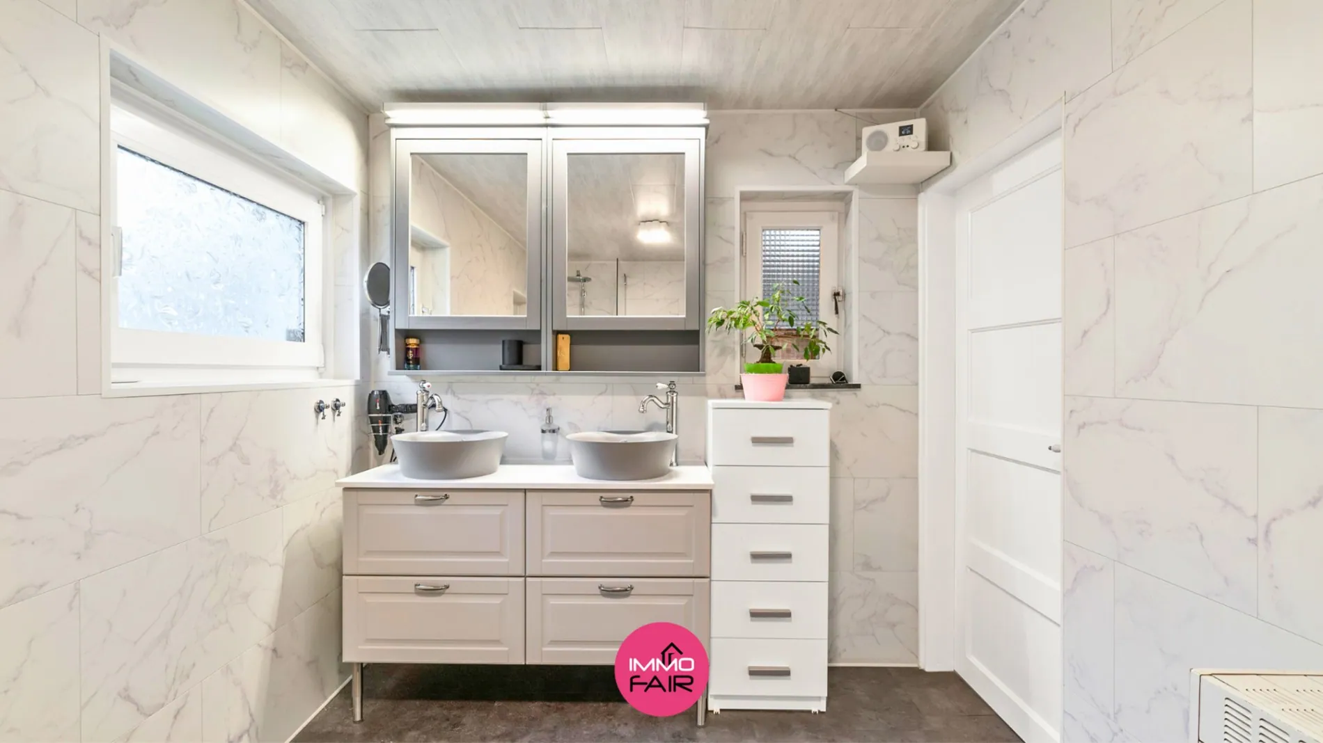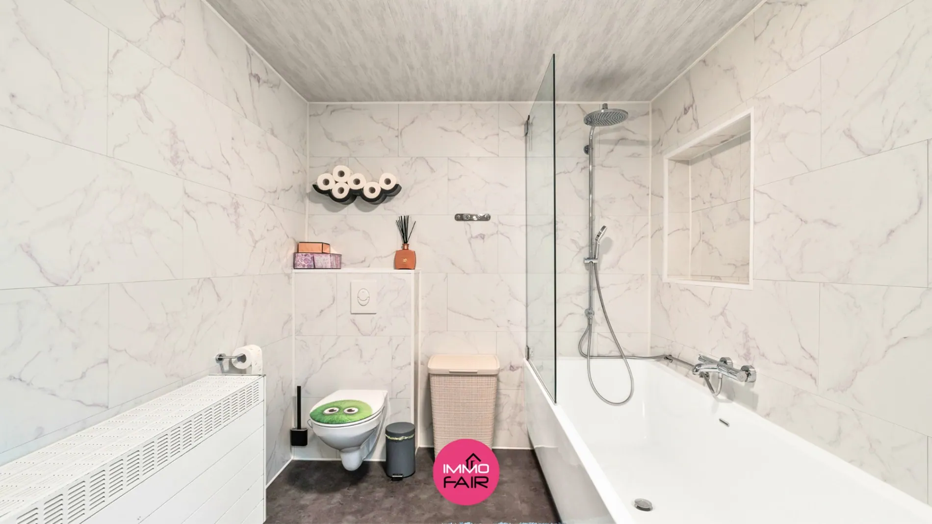 Achter de keuken is er een handige bijkeuken met aansluiting voor de wasmachine. Van hieruit heb je toegang tot de badkamer die is uitgerust met een bad-douchecombinatie, toilet en dubbele wasbak. Tot slot bereik je vanuit de bijkeuken de veranda die uitgeeft op de tuin.