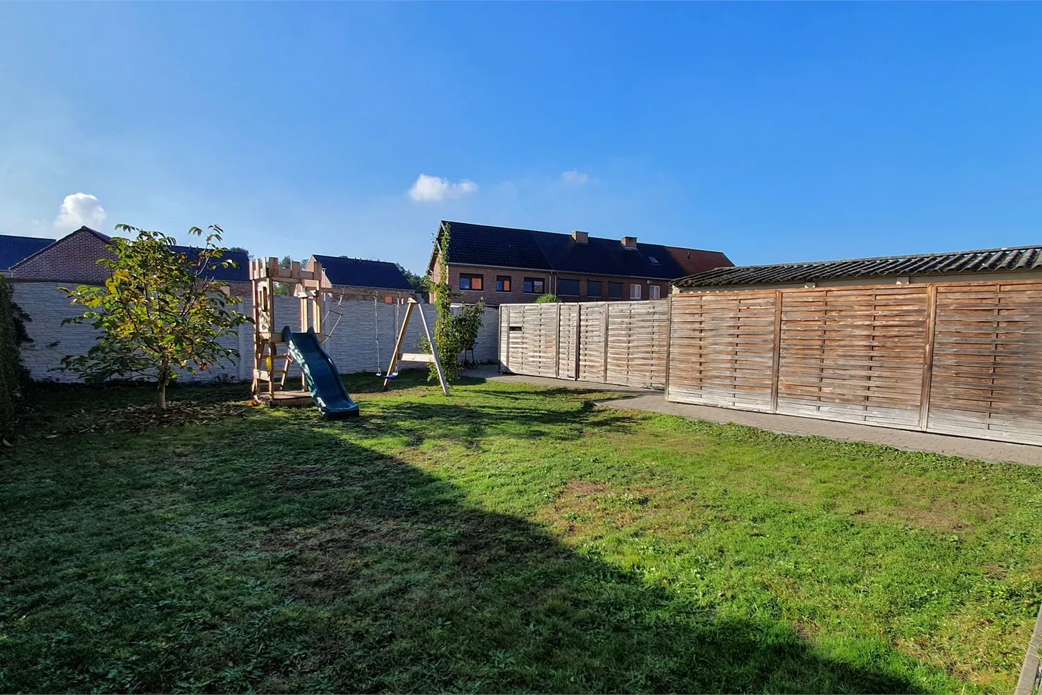 De achtertuin met beklinkerd terras is onderhoudsvriendelijk aangelegd en biedt alle privacy. Naastgelegen is er een garage met extra ruimte voor wagen, fiets en tuingerief.