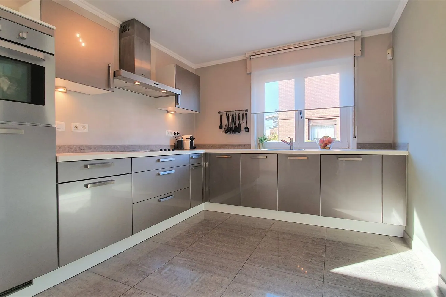 In de open keuken is er degelijke inbouwapparatuur voorzien (combi-oven, koelkast, keramische kookplaat en vaatwasser).