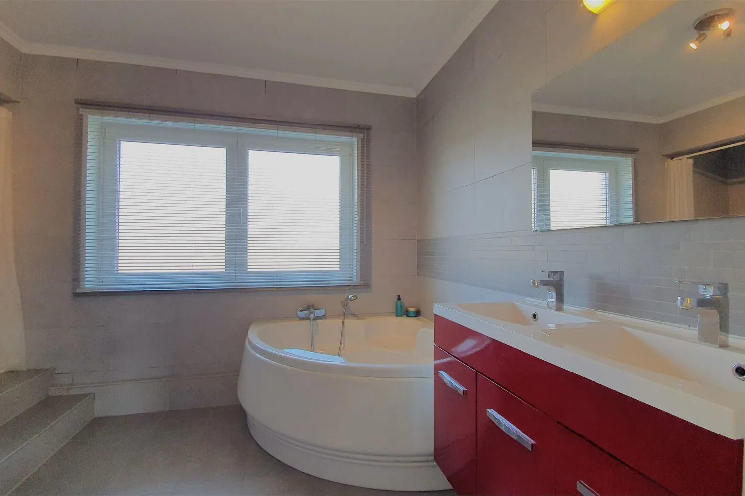 Op de eerste verdieping geeft de nachthal uit op 3 slaapkamers en een badkamer. De betegelde badkamer ... is ingericht met een lavabomeubel, een inloopdouche en een XL-ligbad.