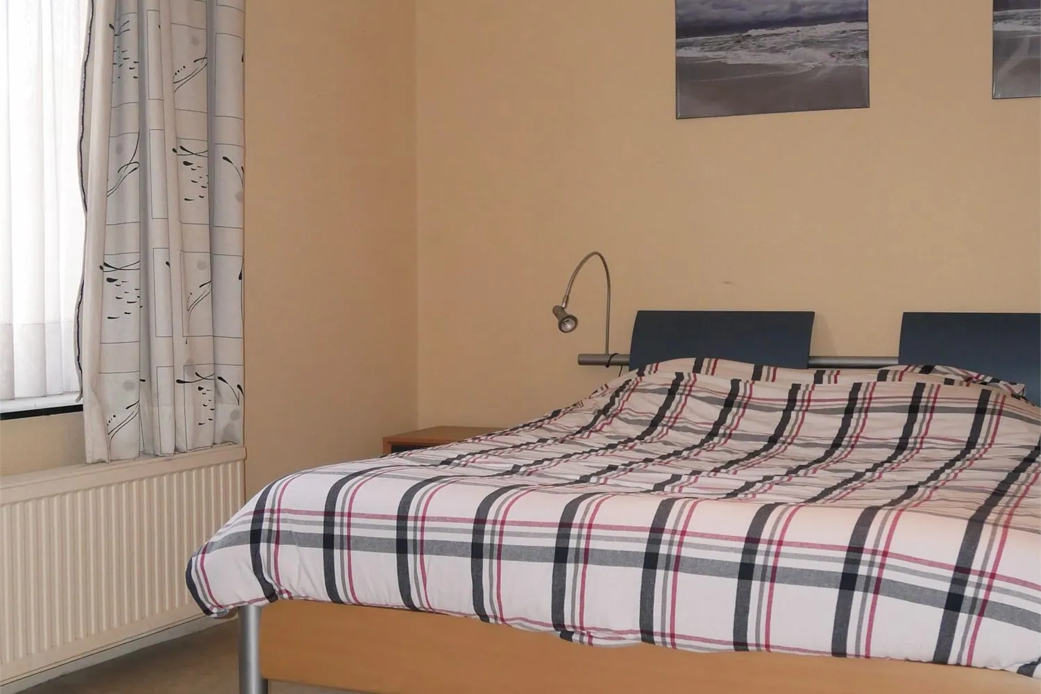 Het linkergedeelte is knus ingericht als woonkamer met zithoek en eetkamer. Aansluitend bevindt zich hier een afzonderlijk, sober ingerichte keuken (elektrisch fornuis met dampkap en spoelbak) en een badkamer met ligbad, toilet en ... lavabo. Alle ramen op de benedenverdieping zijn voorzien van rolluiken.