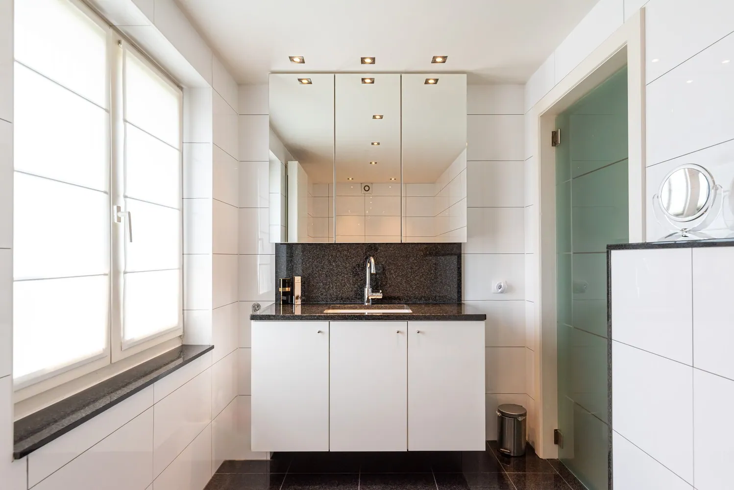 Op kelderniveau bevindt zich een ruime kelderberging en een inpandige garage met automatische sectionaalpoort.