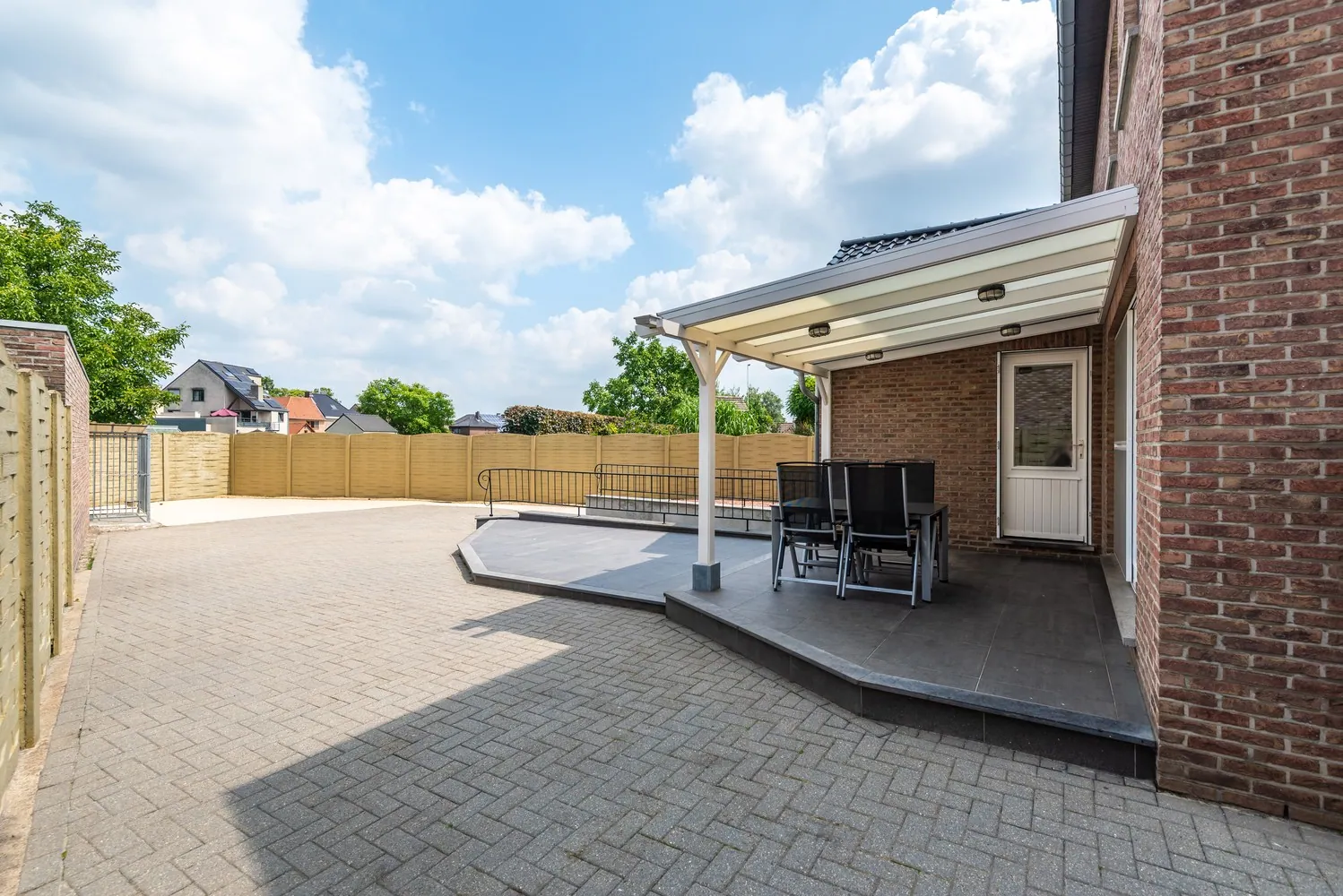De onderhoudsvriendelijke tuin is beklinkerd en volledig omheind. Op het overdekte terras geniet je elk seizoen van de omgeving.