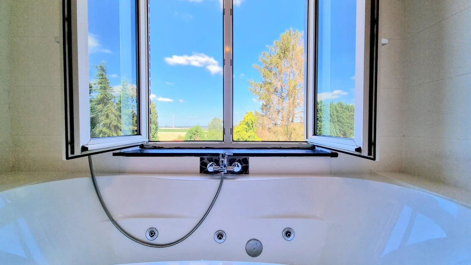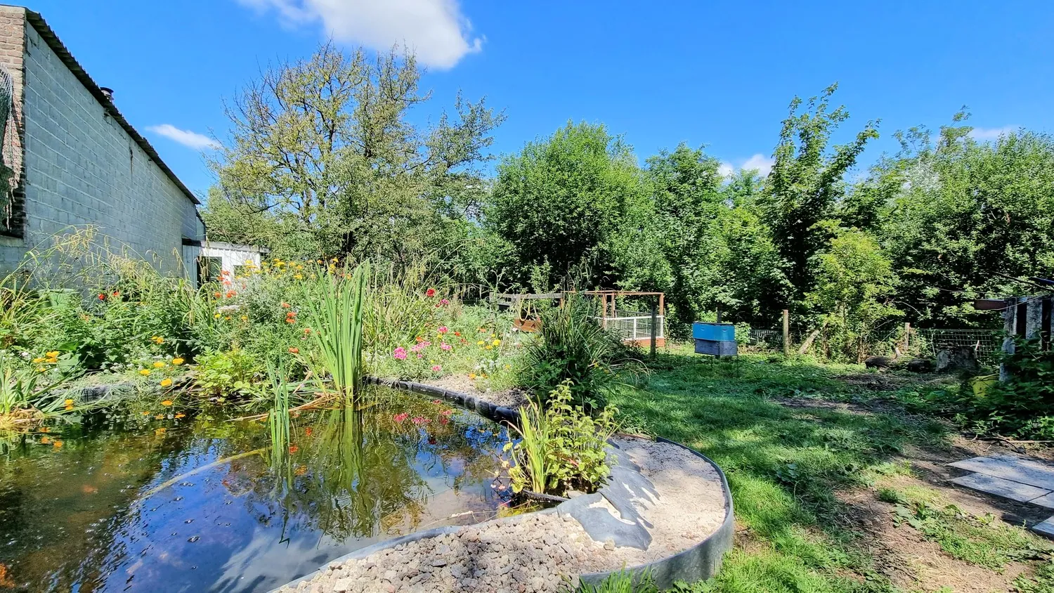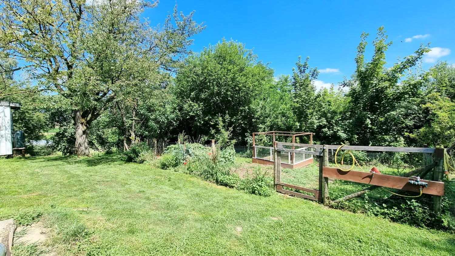 De riante tuin biedt veel privacy en heeft een panoramisch uitzicht op de achtergelegen velden.