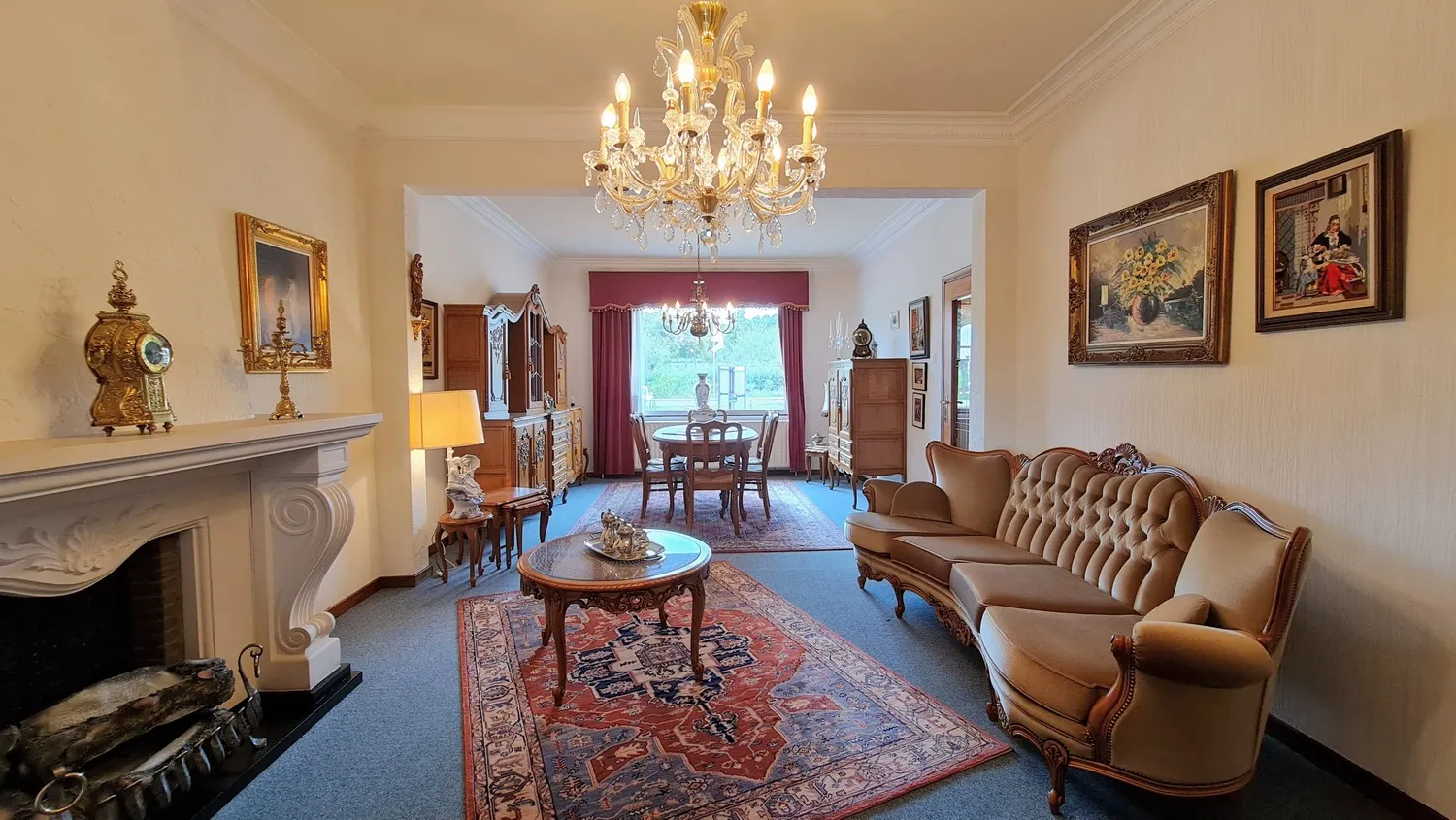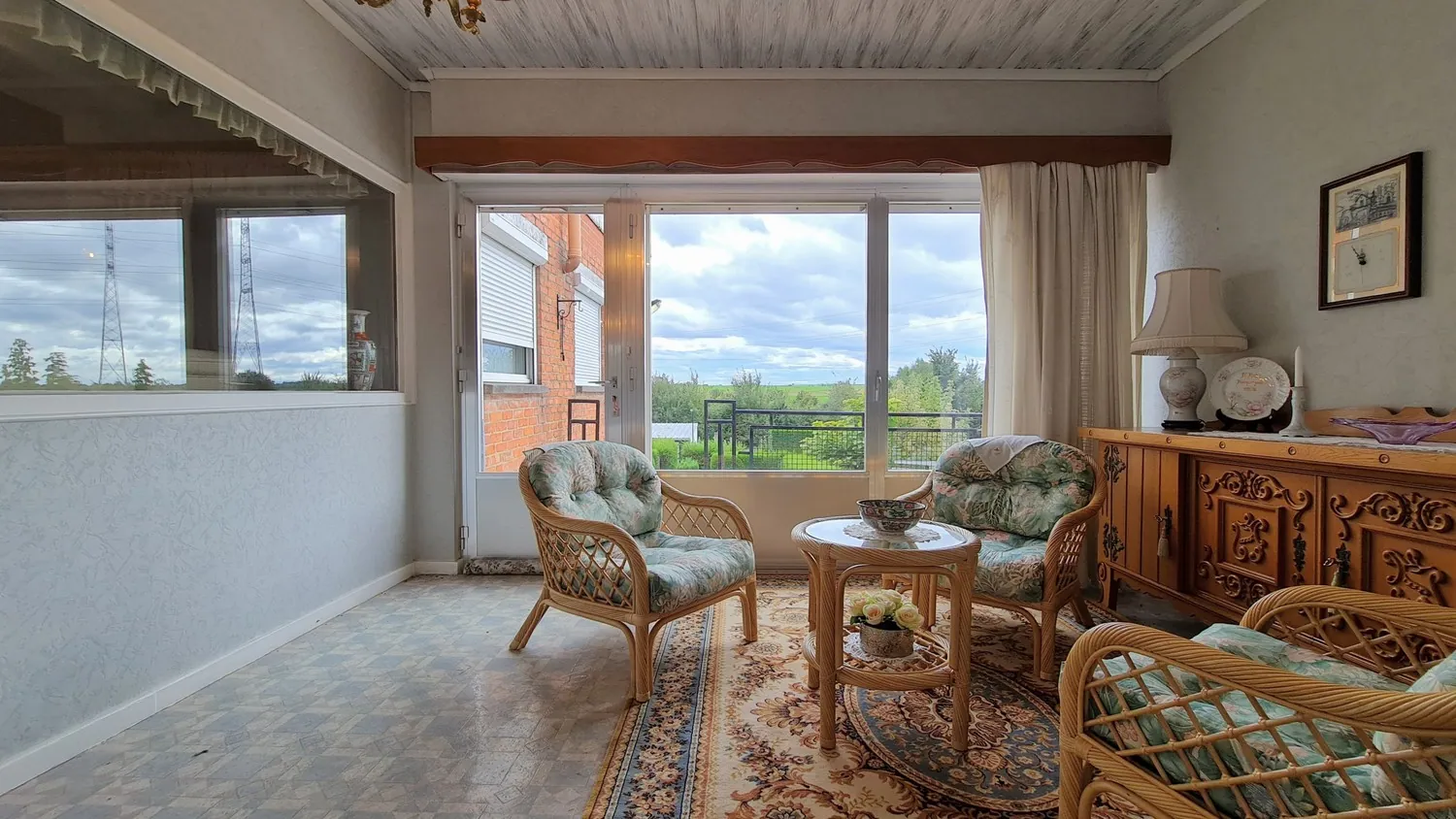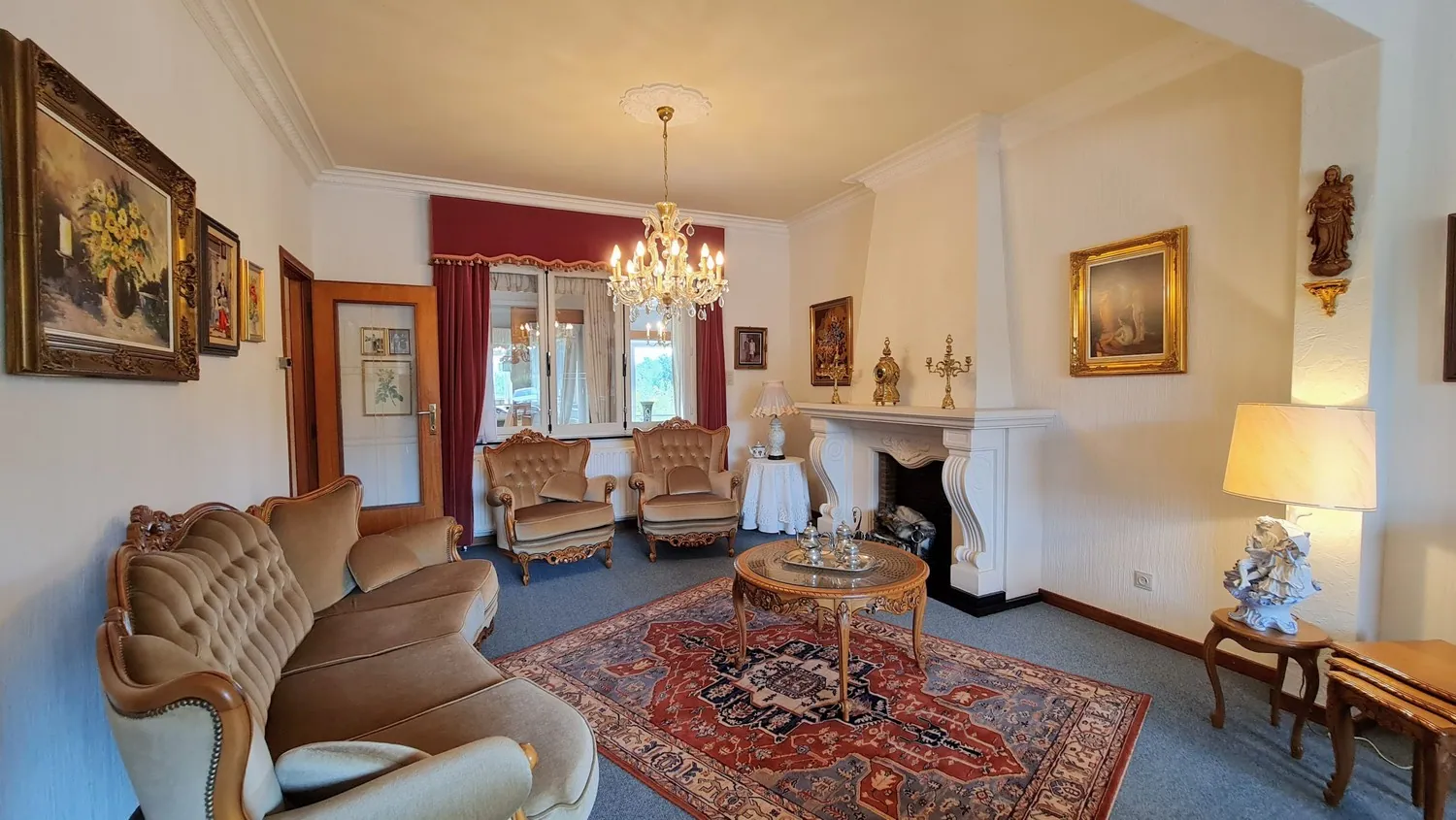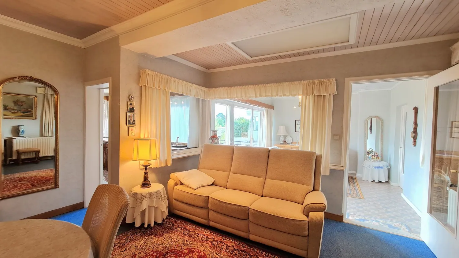 Via de royale inkomhal kom je uit in de leefruimte van 33 m². Deze is opgedeeld in een zit- en eethoek met centraal een sierhaard. Naastgelegen is er een lichtrijke en gezellige veranda: van hieruit kijk je uit op de zongerichte achtertuin. Je kan de tuin bereiken via het balkonterras en de kelder.