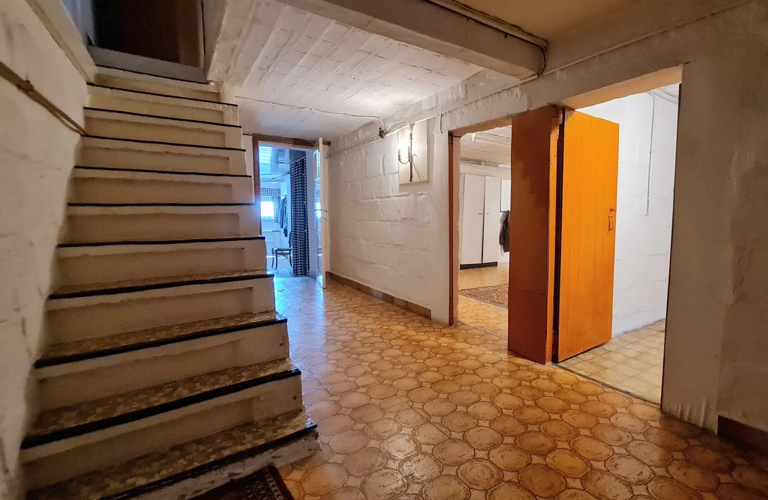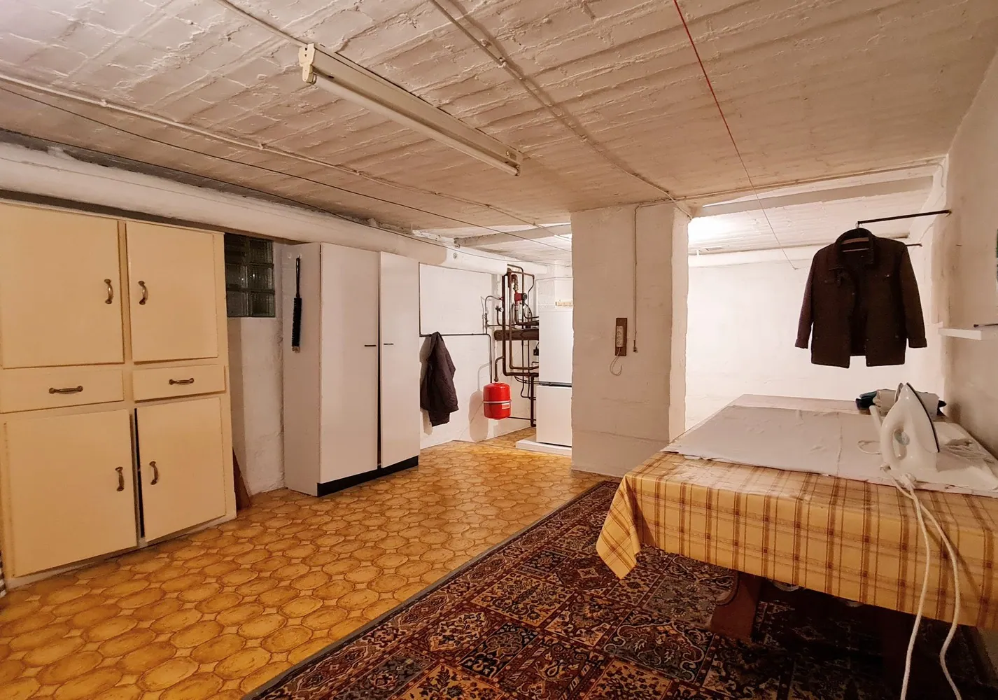 De kelderetage is ingericht als extra leefruimte met kitchenette, wasruimte en atelier.
