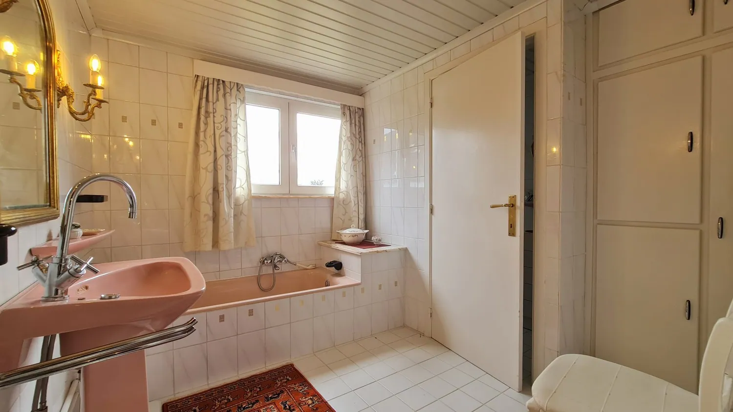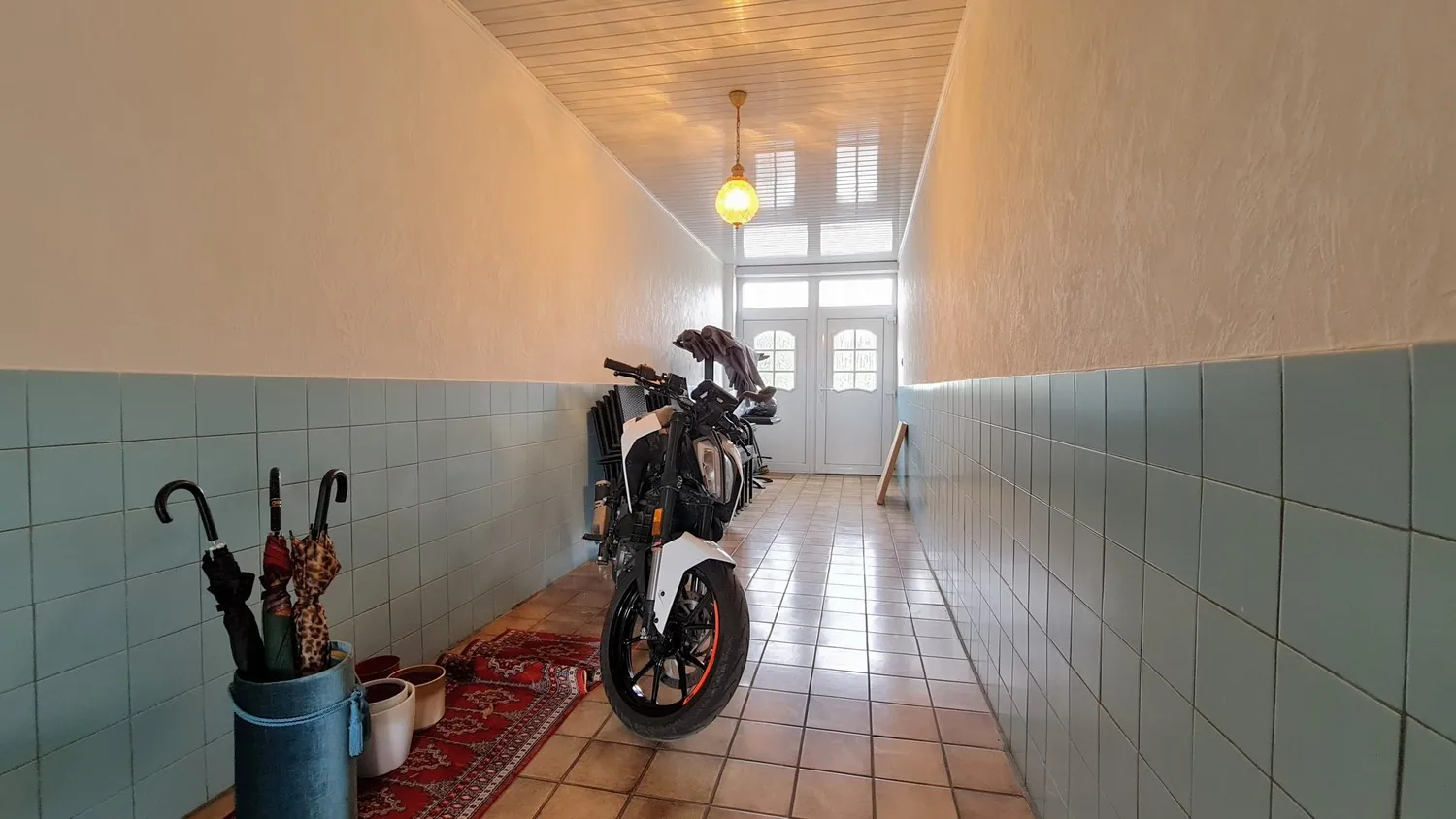 Verder bevindt zich op de benedenverdieping een badkamer met bad, lavabo en apart toilet en een praktische garage. Bovendien is er ook nog een afzonderlijke garage in de tuin.