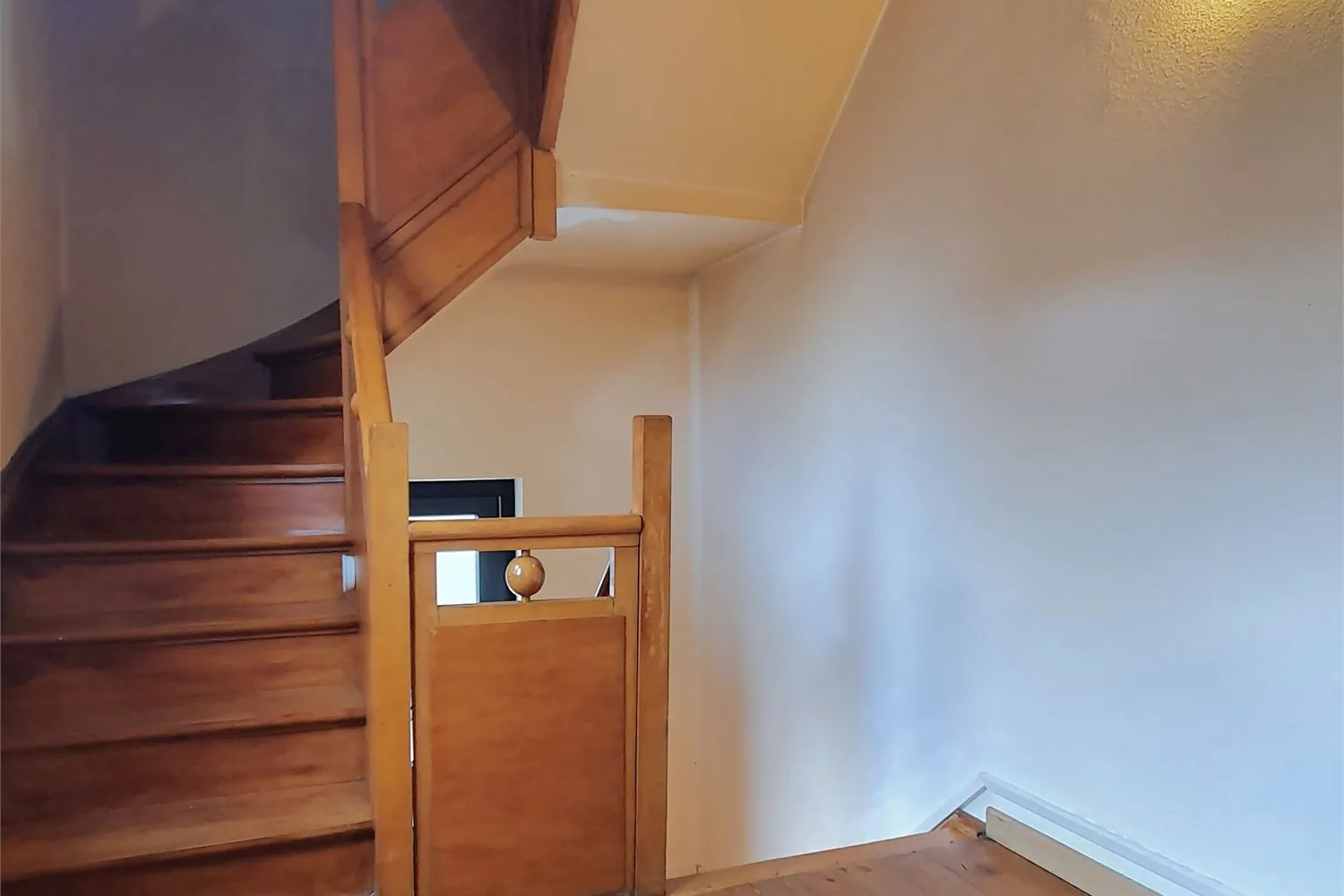 Een vaste, houten trap leidt ons naar de zolderverdieping van 33 m². Deze is ingedeeld in 2 extra ruimtes met ontbloot dakgebinte en authentieke mergelmuren. Perfecte ruimtes voor een extra slaap- of hobbykamer!