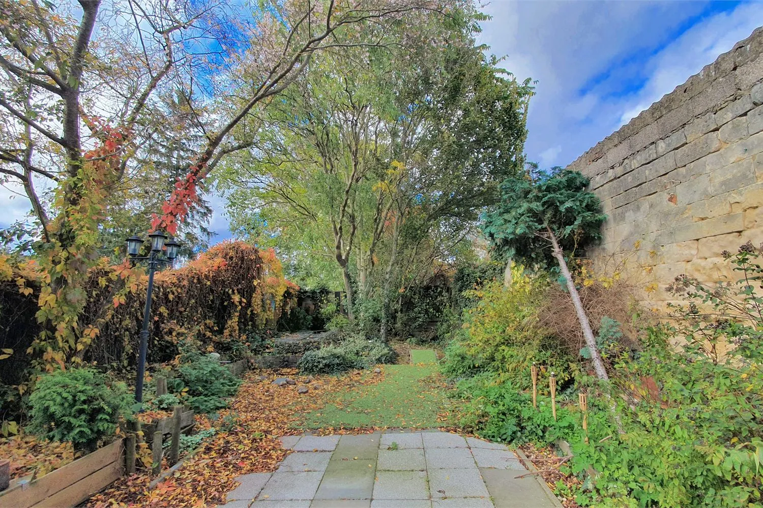 De zongerichte, gezellige tuin is romantisch ingericht met een vijverpartij, hoge beplanting, een tuinpaadje en verschillende terrassen. In de achterbouw zijn er meerdere ruimtes en een toilet ingericht. Deze ingerichte ruimtes zijn bereikbaar via de carport en bijgevolg ook ideaal voor een zelfstandig (bij-)beroep.