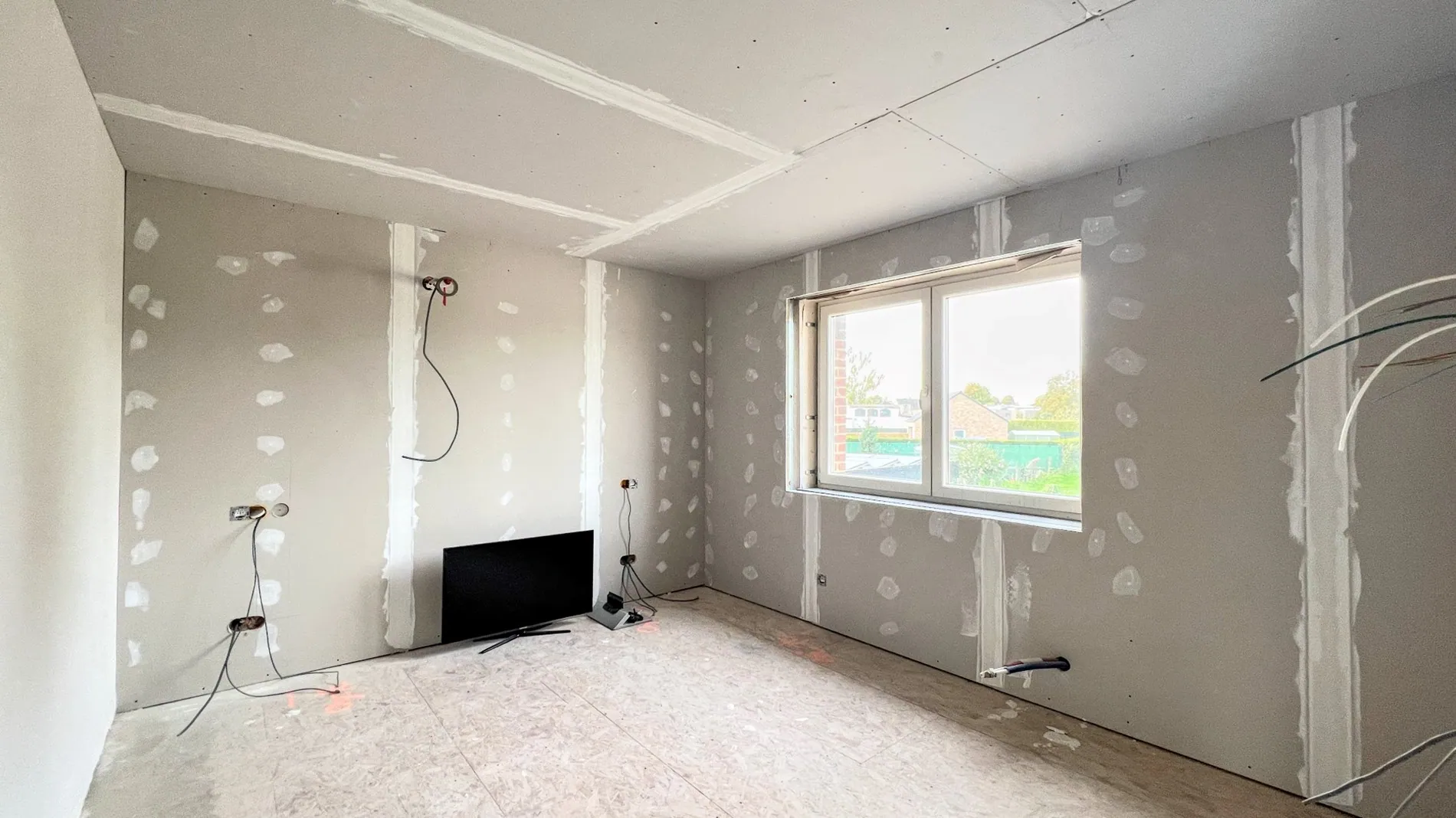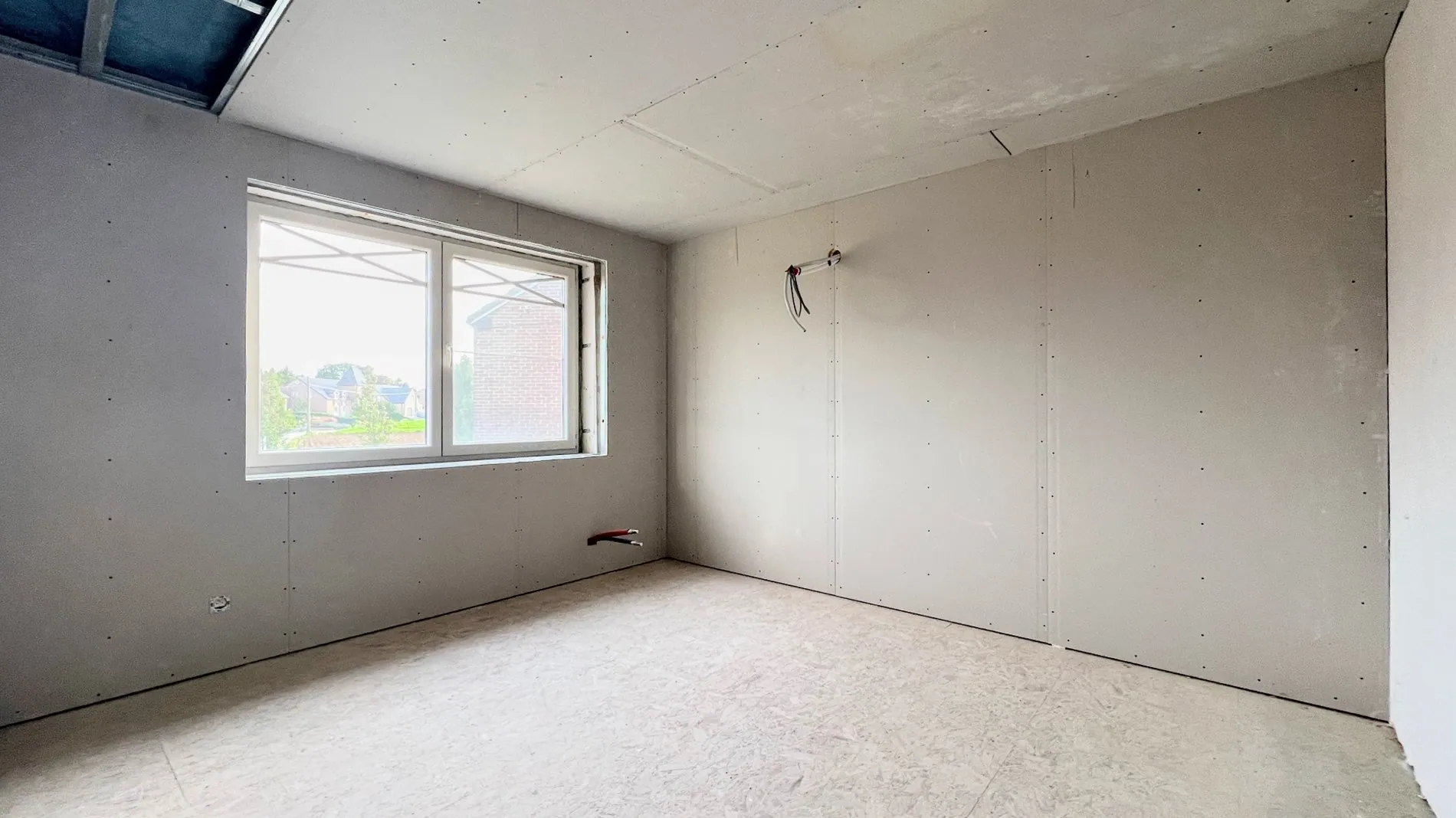Op de eerste etage zijn er twee slaapkamers en een nog af te werken derde slaapkamer. Hier kan ook een badkamer ingericht worden.
