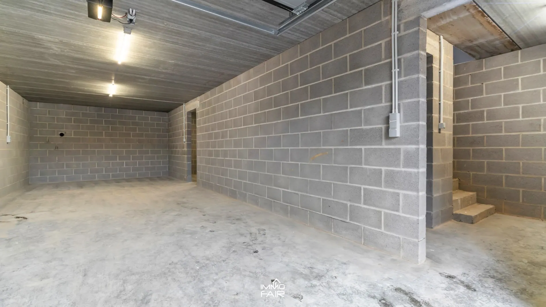 Op kelderniveau zijn er twee autostandplaatsen bereikbaar via een sectionaalpoort. Verder is er hier een fietsenstalling, een voorraadkamer en een technische ruimte.