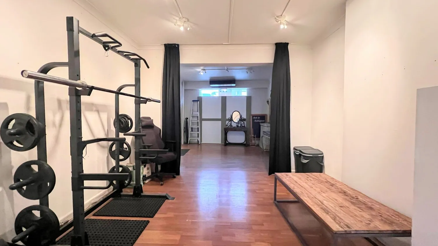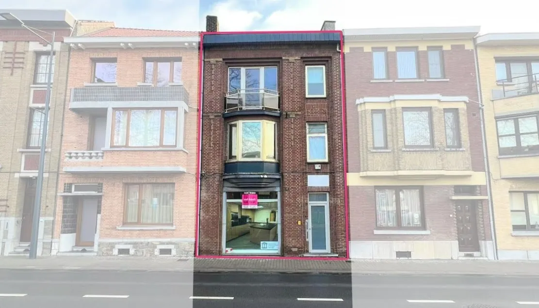 Via de gemeenschappelijke inkomhal heb je toegang tot zowel de handelsruimte als het appartement. De handelsruimte bestaat uit de volledige benedenverdieping en is opgedeeld in verschillende ruimtes met vooraan een etalage. Het handelspand is circa 100 m² groot en is voorzien van een kleine wasplaats. Achter het pand is er een stadstuin die mits het nodige onderhoud omgetoverd kan worden tot een gezellige zitplaats.
